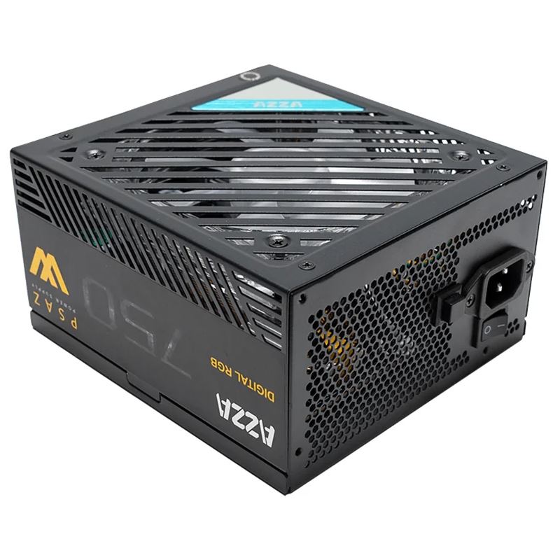 Azza PSAZ-750G. Gesamtleistung: 750 W, AC Eingangsspannung: 100 - 240 V, Energieschutzeigenschaften: Überstrom, Überlastung, Überschreitung der zulässigen Gesamtspannung, Überspannung,.... Motherboard Anschlussstecker: 20+4 pin ATX. Zweck: PC, Stromversorgungseinheit (PSU) Formfaktor: ATX, 80 Plus Zertifizierung: 80 PLUS Gold. Produktfarbe: Schwarz, Lüfterdurchmesser: 12 cm, Anzahl Lüfter: 1 Lüfter. Konformitätsbescheinigungen: CB, CE, Eidgenössische Kommunikationskommission (FCC), RoHS, cTUVus