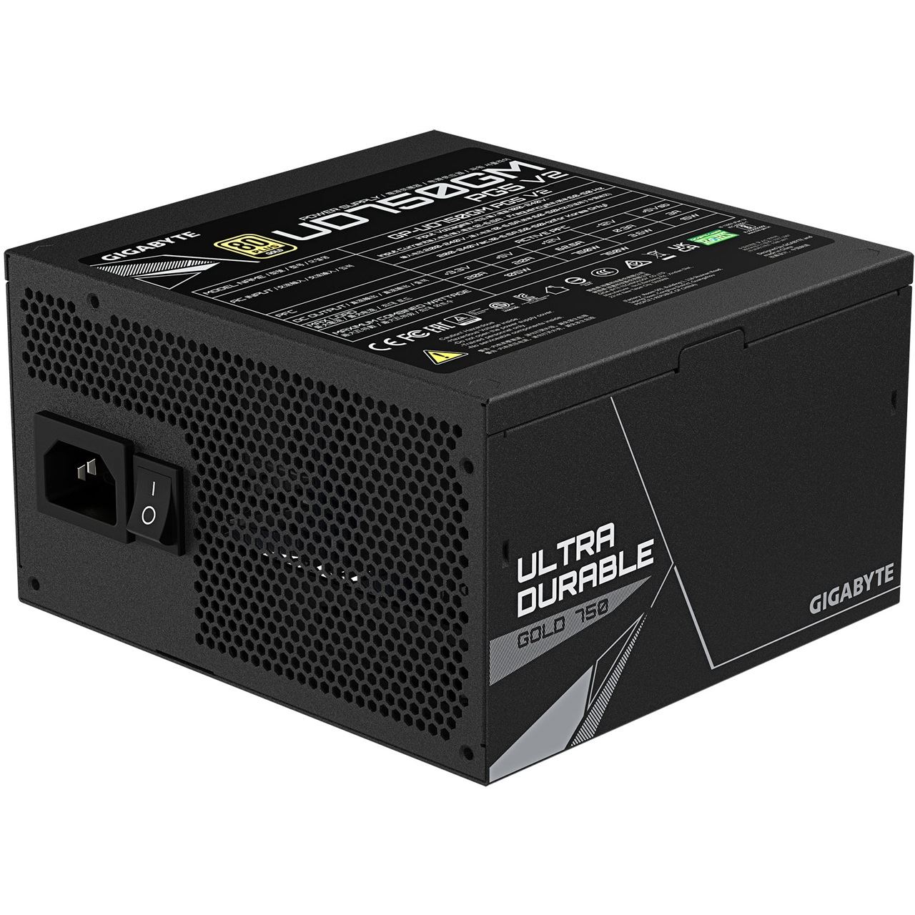 GIGABYTE UD750GM PG5 V2 Netzteil – PCIe Gen 5.1, 80 PLUS Gold, Vollmodulares Design, 120-mm-Lüfter, ATX 3.1-kompatibel, EU-Stecker. Gesamtleistung: 750 W, AC Eingangsspannung: 100 - 240 V, AC Eingangsfrequenz: 50/60 Hz. Motherboard Anschlussstecker: 20+4 pin ATX, Stromkabellänge Motherboard: 61 cm, SATA-Netzkabellänge: 150,600 mm. Zweck: PC, Stromversorgungseinheit (PSU) Formfaktor: ATX, 80 Plus Zertifizierung: 80 PLUS Gold. Produktfarbe: Schwarz, Kühlung: Aktiv, Lüfterdurchmesser: 12 cm. Breite: 150 mm, Tiefe: 140 mm, Höhe: 86 mm