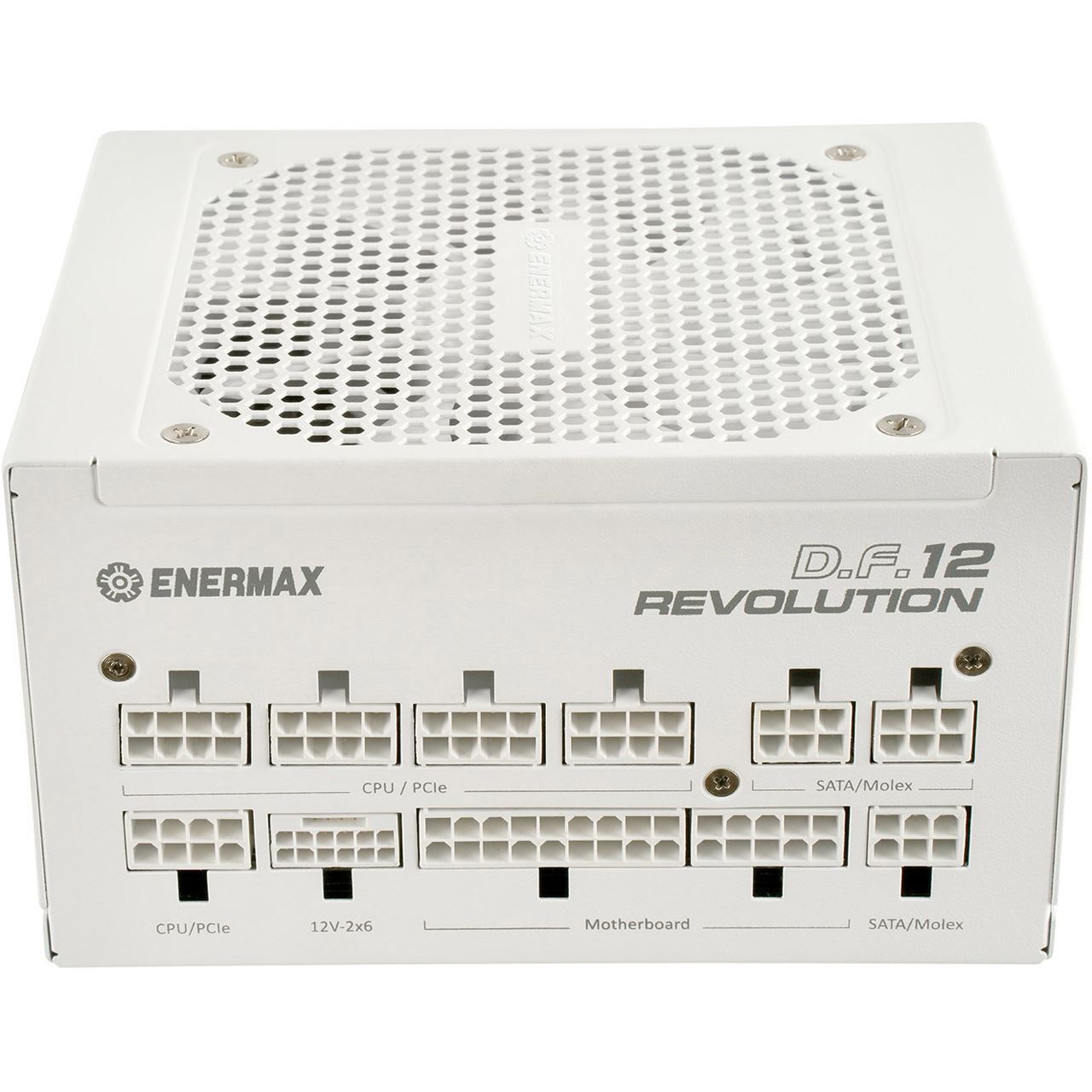 Enermax Revolution D.F.12. Gesamtleistung: 850 W, AC Eingangsspannung: 100 - 240 V, AC Eingangsfrequenz: 50/60 Hz. Motherboard Anschlussstecker: 20+4 pin ATX, SATA-Netzkabellänge: 115,450 mm, Periphere (Molex) Netzkabellänge: 150,450 mm. Zweck: PC, Stromversorgungseinheit (PSU) Formfaktor: ATX, 80 Plus Zertifizierung: 80 PLUS Gold. Produktfarbe: Weiß, Kühlung: Aktiv, Anzahl Lüfter: 1 Lüfter. Breite: 122 mm, Tiefe: 150 mm, Höhe: 86 mm