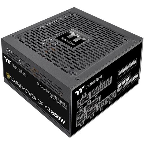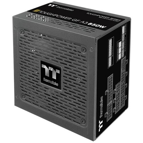 Thermaltake Toughpower GF A3 Gold 850W - TT Premium Edition. Gesamtleistung: 850 W, AC Eingangsspannung: 100 - 240 V, AC Eingangsfrequenz: 50/60 Hz. Motherboard Anschlussstecker: 24-pin ATX, Stromkabellänge Motherboard: 60 cm, SATA-Netzkabellänge: 500,650,800,950 mm. Zweck: PC, Stromversorgungseinheit (PSU) Formfaktor: ATX, 80 Plus Zertifizierung: 80 PLUS Gold. Produktfarbe: Schwarz, Kühlung: Aktiv, Lüfterdurchmesser: 12 cm. Konformitätsbescheinigungen: BSMI, CB, CCC, CE, Eidgenössische Kommunikationskommission (FCC), Niederspannungsrichtlinie...