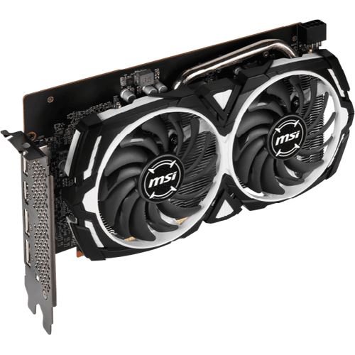 Die TORX Fan 2.0 Lüfterflügel arbeiten paarweise, sodass sie einen fokussierten Luftdruck erzeugen. Mit den Core Pipes verfügt die Grafikkarte über präzise gefertigte Heatpipes, die einen maximalen Kontakt zur GPU ermöglichen. Daraus resultiert die Verteilung der Wärme über den gesamten Kühlkörper, wodurch die gesamte Grafikkarte effizient gekühlt wird.