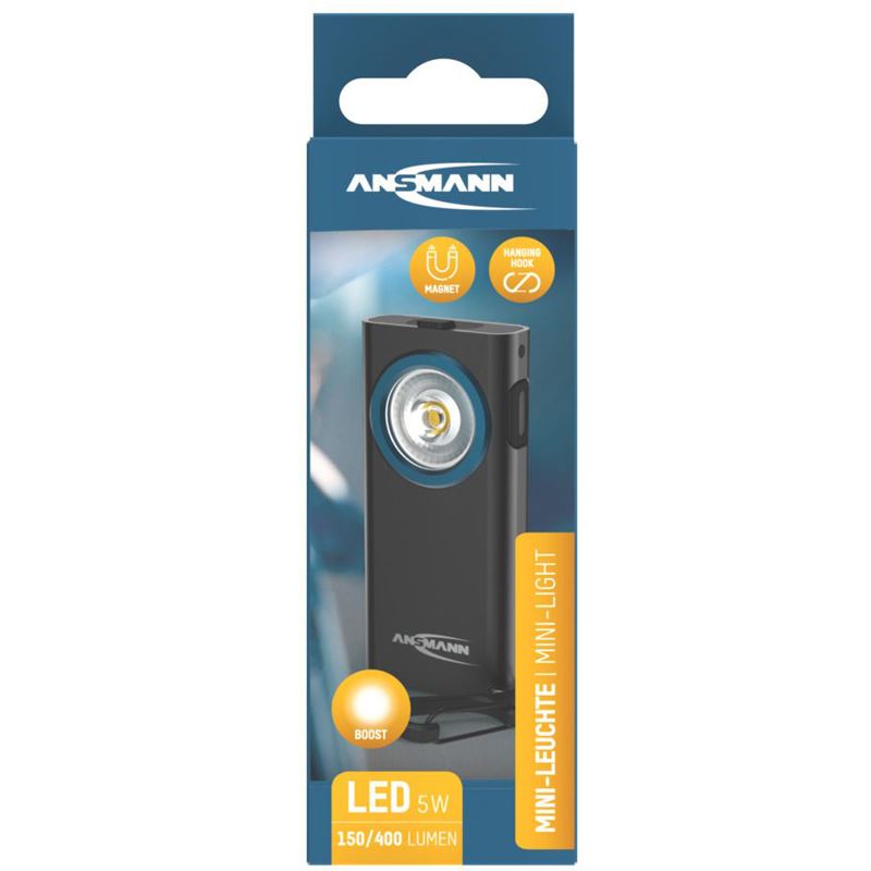 Ansmann ML400R. Taschenlampen Typ: Schlüsselanhänger-Blinklicht, Produktfarbe: Schwarz, Gehäusematerial: Acrylnitril-Butadien-Styrol (ABS), Aluminium. Internationale Schutzart (IP-Code): IPX4, Schutzart: III. Lampentyp: LED, Anzahl Lampe(n): 1 Lampen, Lampenleistung: 5 W. Aufladequelle: USB, Akku-/Batterietyp: Integrierte Batterie, Akku-/Batterietechnologie: Lithium Polymer (LiPo). Breite: 27,5 mm, Tiefe: 15 mm, Höhe: 60 mm