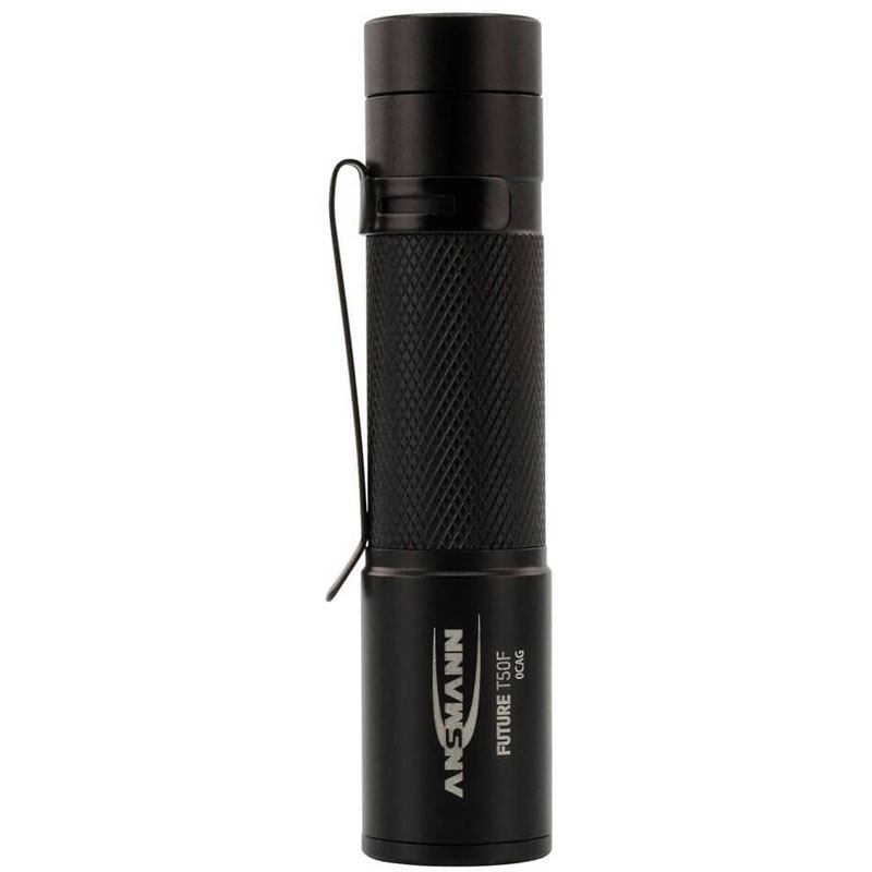 Ansmann 1600-0159. Taschenlampen Typ: Taschenlampe, Produktfarbe: Schwarz, Gehäusematerial: Aluminium. Lampentyp: LED, Anzahl Lampe(n): 1 Lampen, Lichtleistung: 60 lm. Akku-/Batterietyp: AA. Breite: 21 mm, Tiefe: 92 mm, Höhe: 121 mm