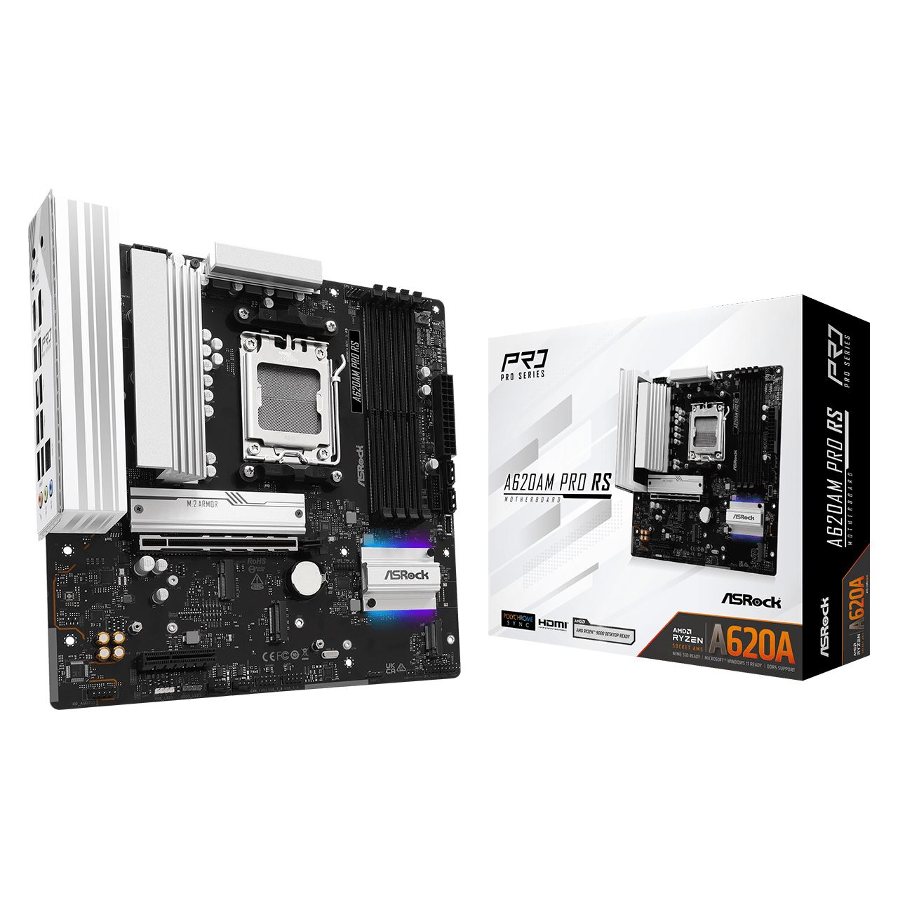 Asrock A620AM Pro RS. Prozessorhersteller: AMD, Prozessorsockel: Sockel AM5, Kompatible Prozessoren: AMD Ryzen 7000 Series, AMD Ryzen 8000 Series, AMD Ryzen 9000 Series, AMD Ryzen PRO 7000 Series,.... Unterstützte Arbeitsspeicher: DDR5-SDRAM, RAM-Speicher maximal: 256 GB, Arbeitsspeicher Typ: DIMM. Unterstützte Speicherlaufwerk-Schnittstellen: M.2, SATA III, Unterstützte Speicherlaufwerke: HDD & SSD, RAID Level: 0, 1, 10. Ethernet Schnittstellen Typ: 2.5 Gigabit Ethernet, LAN-Controller: Dragon RTL8125AG. Komponente für: PC, Motherboardformfaktor: micro ATX, Motherboard Chipsatz Familie: AMD