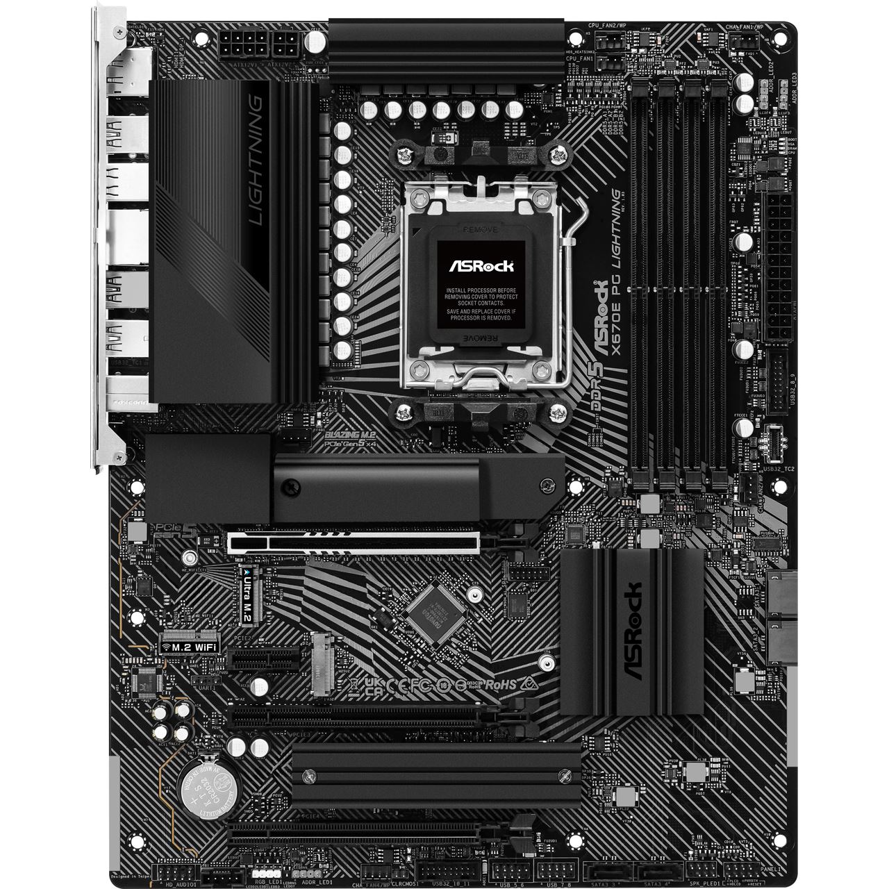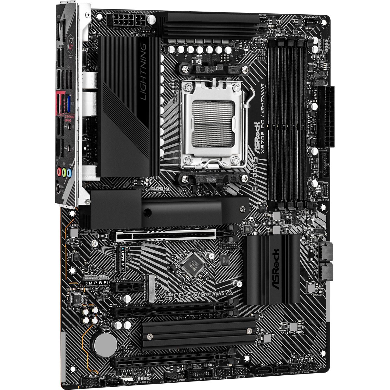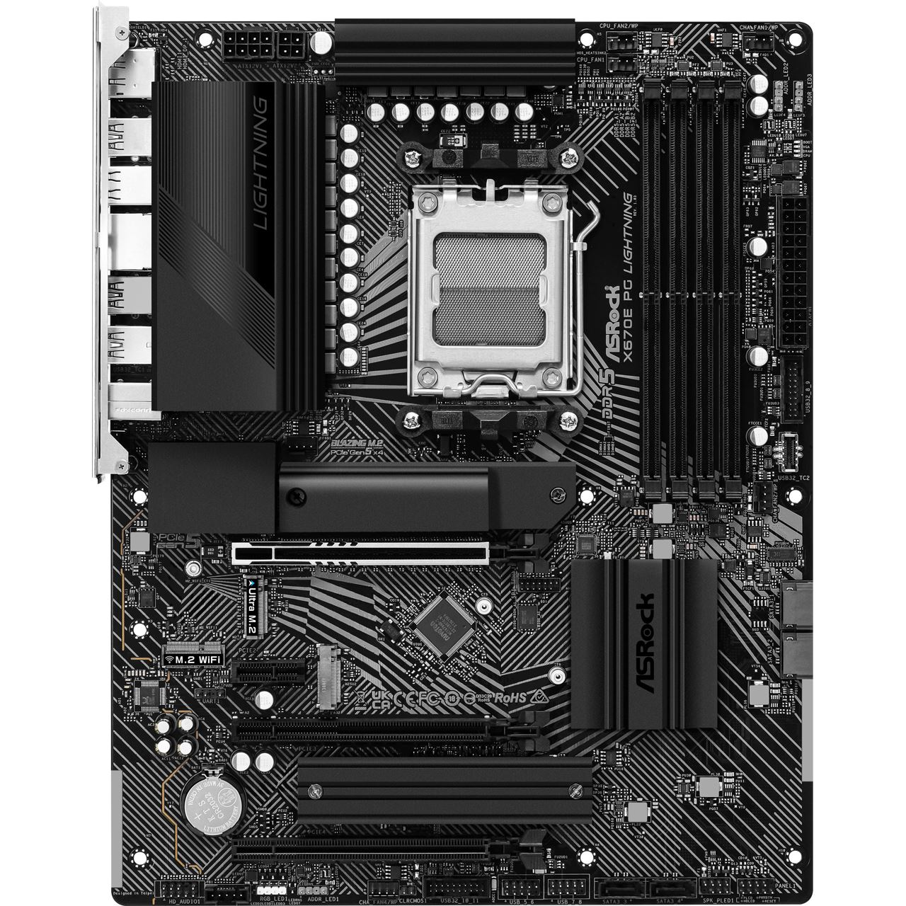 Das ASRock X670E PG Lightning Mainboard ist mit dem Chipsatz X670E für AMDs Ryzen Prozessoren der 7000er-Serie ausgestattet und kommt mit vielen Features daher, die gerade für Gamer und Enthusiasten interessant sind. Aufgrund der Unterstützung von PCIe 5.0 und der erweiterten Stromversorgung wird ein neuer Sockel benötigt. Daher kommt auf den 600er-Serie-Mainboards der AM5 Sockel (LGA 1718) zum Einsatz.