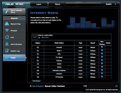 Der Nutzer kann seine Lieblings-Radiosender per Live-Stream oder Webcast über das Internet empfangen. Die Streams können über die grafische Benutzeroberfläche des Routers oder die entsprechende Anwendung abgespielt werden.