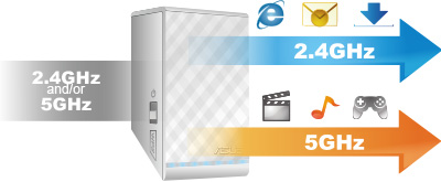 Der Nutzer kann auch dann die Dualband-Fähigkeit des ASUS RP-N53 WLAN-Repeaters nutzen, wenn er einen älteren Single-Band-Router nutzt. Mit einer Bandbreite von bis zu 300 Mb/s im gleichzeitigen Betrieb der 2,4GHz und 5GHz Frequenzbereiche kann er somit seine WLAN-Leistung verdoppeln. Der 2,4GHz-Frequenzbereich ist optimal für tägliche Aufgaben wie das Surfen im Internet, während sich der 5GHz-Frequenzbereich ideal für das Streaming von Multimediainhalten in HD sowie Online-Gaming eignet.