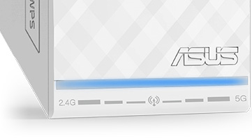 An der Vorderseite des ASUS RP-N53 befinden sich Status-LEDs, mit deren Hilfe der Nutzer die Signalstärke der 2,4GHz- und 5GHz-Frequenzbereiche auf einen Blick erkennen kann.