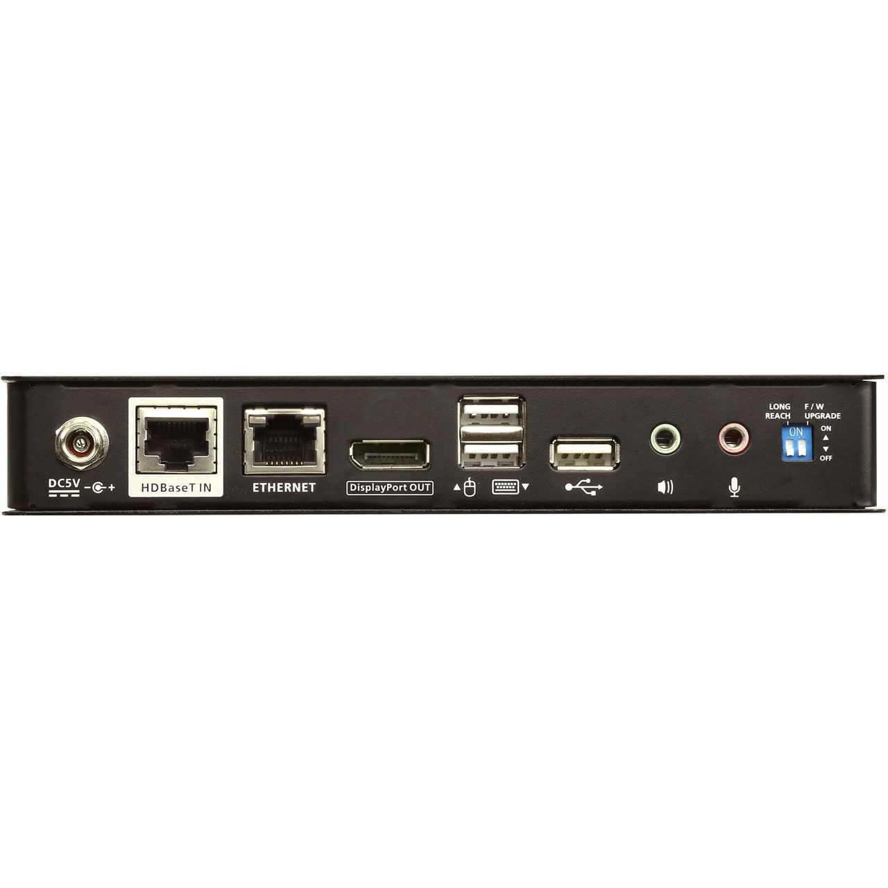 ATEN CE920-ATA-G. Typ: Sender und Empfänger, Übertragungstechnik: Kabelgebunden, Maximal mögliche Übertragungsstrecke: 150 m. Transmitter-Video-Anschlusstyp: DisplayPort, Transmitter lokaler Tastatur-/Maus-Anschlusstyp: USB. Empfänger lokaler Video-Anschlusstyp: DisplayPort, Empfänger lokale Tastatur/Maus-Anschlusstyp: USB. USB Datenübertragungsraten: 480 Mbit/s. Netzteil Ausgangsspannung: 5 V, Stromverbrauch (Sender) (max.): 3,99 W, Stromverbrauch (Empfänger) (max.): 6,74 W