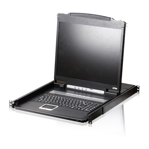 ATEN CL1000N. Bildschirmdiagonale: 48,3 cm (19"), Display: LCD. Tastatursprache: Schweiz, Tastaturaufbau: QWERTZ. Stromverbrauch (Standardbetrieb): 24 W, Eingangsstrom: 1 A. Breite: 585,2 mm, Höhe: 44 mm, Tiefe: 483 mm. Mitgelieferte Kabel: AC, KVM