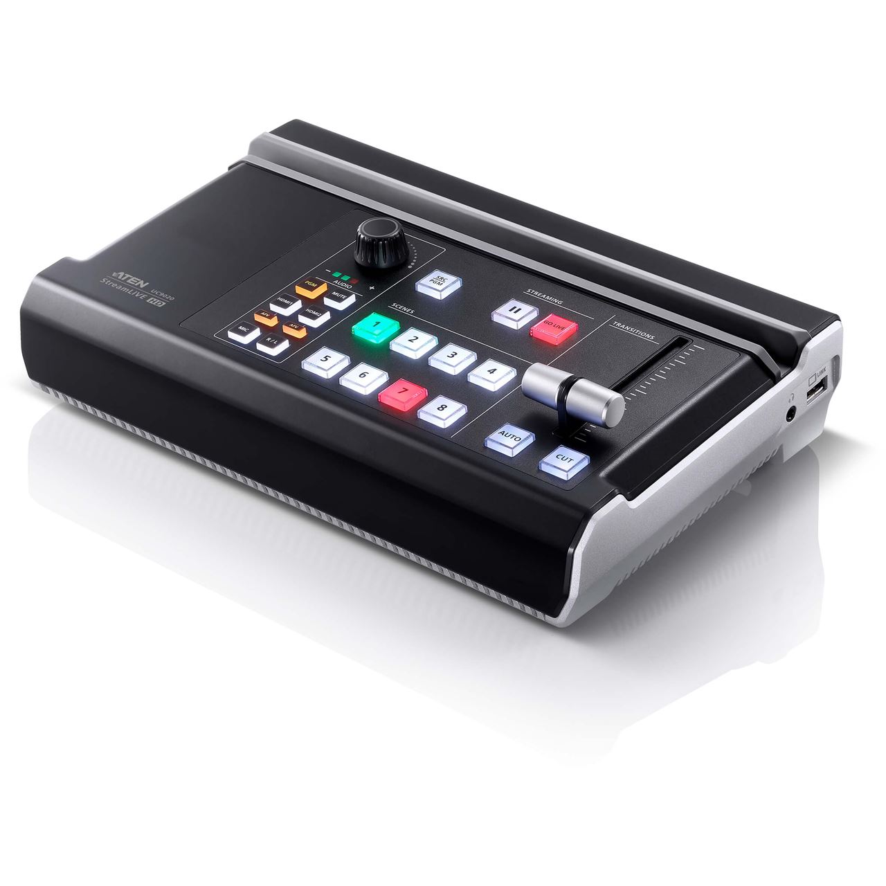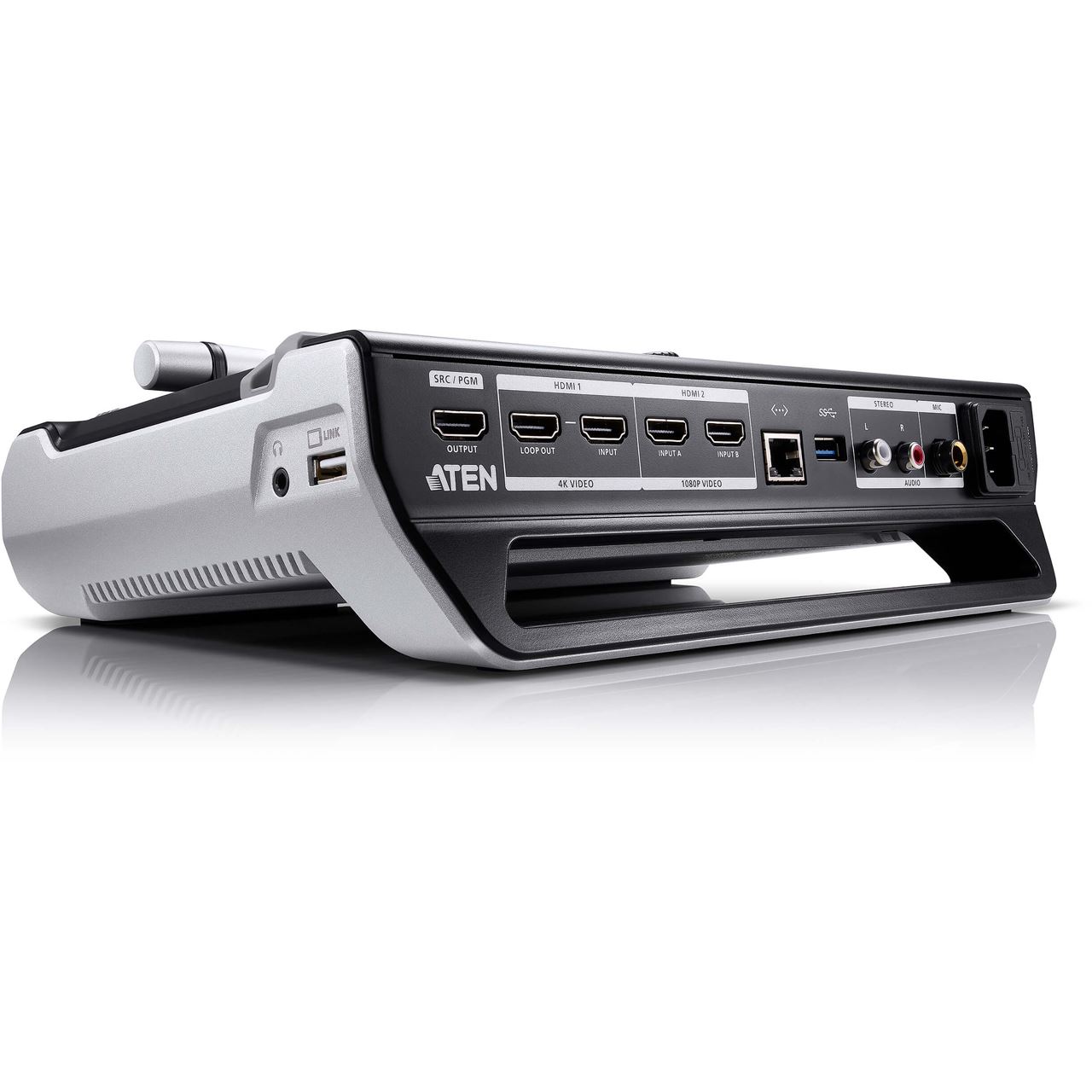 Für den Betrieb ist eines der folgenden ipad-Modelle erforderlich (nicht im Lieferumfang enthalten):iPad Pro (3. Gen.) mit iOS 11 oder höherDas folgende iPad mit iOS 11 oder höher (Zusätzlicher Apple Lightning USB 3 Adapter ist erforderlich, nicht im Lieferumfang enthalten):iPad Pro (1. Gen.)iPad Pro (1. Gen.)iPad Pro (2. Gen.)iPad Pro (2. Gen.)iPad (5. Gen. oder höher)iPad Air (3. Gen. oder höher)iPad Mini (5. Gen. oder höher)Erstellen Sie mit UC9020 StreamLIVE™ HD eine professionelle, dynamische Multikamera-Produktion. Es ist das einfachste, komplett ausgestattete Livestreaming Studio in TV Qualität, das klein in der Größe und groß in der Leistungsfähigkeit ist. Alles, was Sie für Livestreaming benötigen, ist bereit für ein einfaches Plug-and-Play. Kein Computer, Monitor oder komplizierte Softwareeinstellungen erforderlich. Erfassen, streamen und wechseln Sie zwischen zwei Full HD Videoeingängen über das Internet und bringen Sie Ihre Videoproduktion sofort auf die nächste Stufe.Jeder Zentimeter von StreamLIVE? HD wurde für die einfachste Bedienung optimiert, z.B. das Hardware Bedienfeld und die leistungsstarke und dennoch hochentwickelte APP Steuerung, die Ihr iPad* in eine Touch Oberfläche für Steuerung, Anzeige einer Vorschau, Echtzeitbearbeitung und Anordnung von mehreren Elementen zur Programmorganisation verwandelt. Sie können Video/Audio umschalten und mischen, Einstellungen und Effekte ändern und bis zu 8 Szenen für einen schnellen Wechsel speichern. Detaillierte Informationen zur iPad Kompatibilität finden Sie in den Spezifikationen. Mit dem integrierten Encoder und Streamingserver müssen Sie sich nur mit Ihren Videoquellen und Ihrem Netzwerk verbinden. StreamLIVE? HD ist mit allen gängigen Plattformen kompatibel und kann praktisch überall gleichzeitig auf zwei Plattformen live übertragen werden, z.B. Facebook, YouTube, Vimeo, Livestream oder jedem beliebigen RTMP Ziel, alles in hochwertiger Full HD Qualität. Facebook. Youtube. Live Stories. Periscope. Meerkat. YouKnow. Twitter. Vimeo Ihr iPad wird zu Ihrem persönlichen Videobearbeitungssystem. Mit der ATEN OnAir? App können Sie mit der intuitiven Touchscreen Oberfläche und dem benutzerdefinierten Szeneneditor bis zu 8 benutzerdefinierte Szenen gestalten und voreinstellen. Kombinieren, beschneiden und skalieren Sie Videos, um hervorragende PnP Layouts zu erstellen. Fügen Sie transparente PNG Bilder, Hintergründe und Textüberlagerungen mit professionell wirkenden Effekten hinzu. Die Szenenvorgaben können exportiert und mit Ihrer Community auf andere StreamLIVE? HD Systeme übertragen werden. StreamLIVE? HD wurde entwickelt, um Ihren Workflow in der Videoproduktion zu vereinfachen, und ist nicht nur allumfassend, um Geräte und Verkabelungen zu reduzieren, die Sie für das Streaming benötigen, sondern auch kompakt in der Größe und mit extremer Mobilität. Es ist einfach zu installieren und zu transportieren. Sie werden von schweren Geräten und komplexen Aufbauten entlastet. Verwenden Sie StreamLIVE? HD, wann immer Sie streamen müssen, und es wird Ihr unverzichtbarer Begleiter für die Live Videoproduktion sein. StreamLIVE™ HD ist ein tragbares, All-in-One, mehrkanaliges Audio/Video Mischgerät, das eine 1080p Videoaufnahme, Videoumschaltung, Stream Übertragung, Videokonverter, Video Splitter und Audiomischer in einer kompakten Box integriert, um den Aufwand für die Arbeit mit verschiedenen AV Geräten zu vermeiden. StreamLIVE™ HD ermöglicht die Übertragung von HDMI Videoquellen für qualitativ hochwertigeren Livestream auf CDN Plattformen wie YouTube Live, Facebook und Twitch. StreamLIVE™ HD bietet eine intuitive App, die es einfach macht, Bildlayouts zu überwachen, zu bearbeiten und PIP Einstellungen anzupassen. StreamLIVE™ HD ist PC- und softwarefrei und ermöglicht mit dem gut durchdachten Bedienfeld einen reibungslosen und mühelosen Livestreaming Betrieb. Sie können sogar eine Vorschau von Videos und Audiopegeln anzeigen, bevor Sie mit Ihrer Webübertragung live gehen! Verbinden Sie einfach Video-/Audioquellen und ein Ethernet mit einem iPad mit installierter ATEN App und schon können Sie loslegen: Egal ob Sie aufnehmen, bearbeiten oder streamen, StreamLIVE™ HD mit dem ergonomischen und praktischen Design ist flexibel genug, um alle unabhängigen Livestreaming Umgebungen zu integrieren. Mit einem umfangreichen Funktionsumfang stellt sich StreamLIVE™ HD den Herausforderungen unabhängiger Livestreaming Sender und bietet eine einfach zu bedienende Lösung.All-in-One Design zur Vereinfachung des Streaming Workflows–Integriert 1080p Videoaufnahme, Videoumschaltung, Streaming Encoder, Videokonverter, Videosplitter und AudiomischerProfessionelles Livestreaming für ein globales Publikum über jede CDN Plattform, mit einer niedrigen Einstiegsschwelle, selbst für Einsteiger ist ein schneller Start möglichPC- und softwarefrei mit Plug-n-Roll FunktionalitätIntuitive App für Vorschau und Programmüberwachung, Ändern des Videolayouts in Vollbild/PBP/PIP Einstellungen, Hinzufügen von Bild- und Untertitelüberlagerungen und sanften Szenenübergängen für einen professionellen AuftrittStoryboardartige Verwaltung – voreingestellt auf bis zu 8 Szenen für später beim Streaming und während der Übertragungen, um die Notwendigkeit der Interaktion mit der Hardware zu reduzierenKompaktes Mischpult – Umschalten und Mischen zwischen mehreren Video- und Audioquellen mit Hilfe von leicht erkennbaren LeuchttastenLüfterloses und optimiertes thermisches Luftströmungssystem für leisen BetriebMultitasking Griffständer zur Verbesserung der Tragbarkeit und des ergonomischen KomfortwinkelsLieferumfang:1x UC9020 StreamLIVE? HD1x LIN6-09B1-C11G USB-A auf USB-C Kabel1x LIN5-04U1-U1HG USB-A auf USB-A Kabel1x LIN2-418K-E12G Stromkabel1x BenutzeranleitungFunktionCL3116NXComputerverbindungenDirekt16Maximum256 (via Kaskadierung)PortauswahlOSD, Schnelltasten, DrucktastenAnschlüsseKVM-