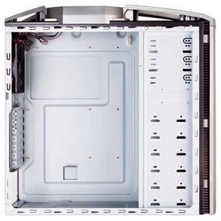 Das Antec Gehäuse Six Hundred ist speziell auf die Bedürfnisse von Gamern ausgerichtet. Vom optischen Design über die interne Anordnung bis zum Kühlsystem lässt das Six Hundred kaum einen Gamerwunsch offen. Eine sich an der Seite befindliche Acrylglasscheibe gewährt einen Einblick in das Innere des farblich in Schwarz und Silber gehaltenen Gehäuses. Zusammen mit der perforierten Frontblende, dem im "Moonroof-Design" gestalteten, oberen Panel und der von den Lüftern ausgehenden blauen LED-Beleuchtung ist das Gehäuse ein echter Hingucker, das sich unter keinem Schreibtisch mehr zu verstecken braucht. Es verfügt über zehn Laufwerkeinschübe, drei externe 5,25", sechs interne 3,5" sowie den "Hot-Swap-Caddy", einen fest installierten, externen 3,5" SATA-Festplattenrahmen. Zusammen mit sieben Erweiterungssteckplätzen, dem CPU-Cutout für eine einfache Installation von CPU-Kühlern und einem übersichtlichen Kabelmanagement bieten sie eine solide Basis für ein sensationelles Gaming-Erlebnis. Auch das Kühlsystem ist äußerst gut durchdacht. Die perforierte Frontblende ermöglicht eine optimale Luftzufuhr. An der Oberseite ist ein 200mm TriCool-Lüfter und an der Rückseite ein 120mm TwoCool-Lüfter installiert, optional können noch drei weitere 120mm Lüfter, zwei in der Front zur Festplattenkühlung und einer an der Seite für eine bessere Kühlung der Grafikkarte, verbaut werden. Das Netzteil wird an der Unterseite angebracht. Dadurch kommt die entstehende Hitze gar nicht erst ins Gehäuse und belastet dementsprechend auch nicht zusätzlich das Kühlsystem.
