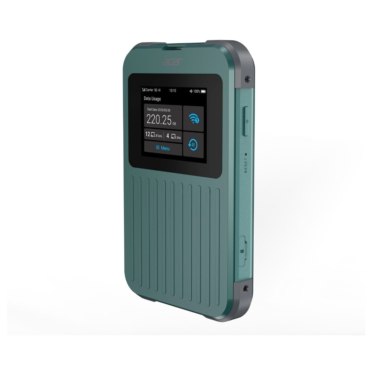 Acer Connect M4E - 1GB. WLAN-Band: Dual-Band (2,4 GHz/5 GHz), Top WLAN-Standard: Wi-Fi 6 (802.11ax), WLAN-Standards: 802.11a, 802.11b, 802.11g, Wi-Fi 4 (802.11n), Wi-Fi 5 (802.11ac), Wi-Fi 6 (802.11ax). Mobilfunknetzgenerierung: 5G, 4G-Standards: LTE-TDD & LTE-FDD, 5G-Standard: NR. Produkttyp: Tragbarer Router, Internationale Schutzart (IP-Code): IP68. Antennen-Design: Intern, Antennentyp: 2x2. Prozessorhersteller: MediaTek, Prozessor: MediaTek MT8791, Prozessortaktfrequenz: 2400 MHz