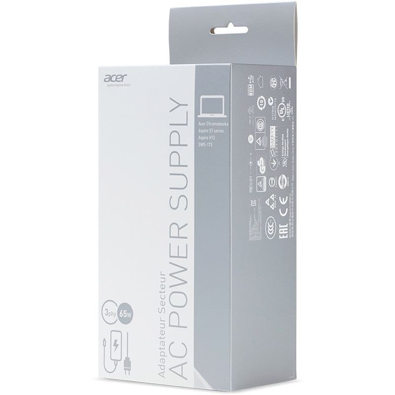 Acer AC Adapter 65W. Zweck: Laptop, Netzteiltyp: Drinnen, Eingangsspannung: 100-240 V. Produktfarbe: Schwarz
