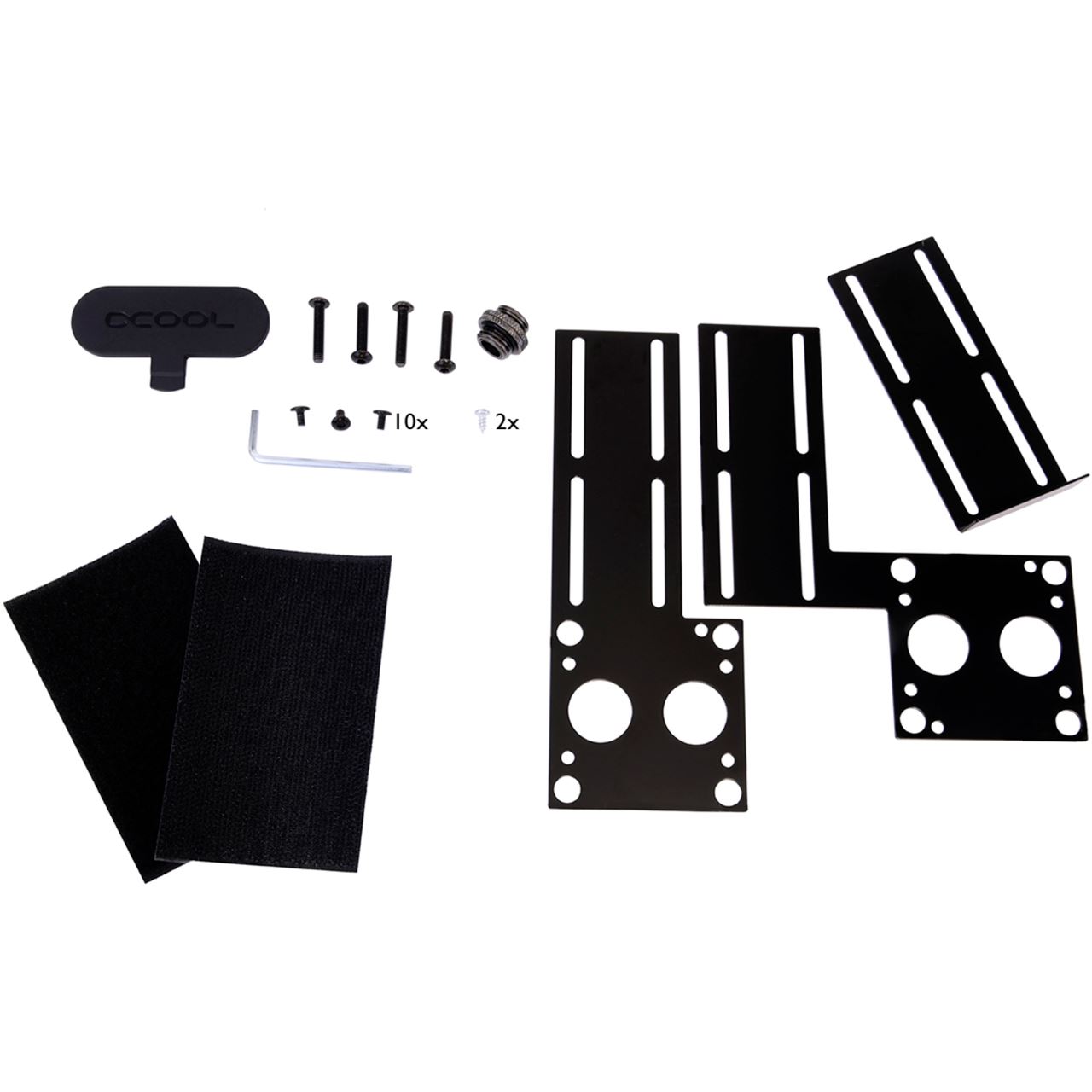 Das Alphacool ES 2U Reservoir ist eine Entwicklung für die Enterprise Solution-Serie. Es verfügt über ein integriertes Pumpenoberteil für die leistungsstarke DDC-Pumpe und bietet viele Anschluss- und Montagemöglichkeiten. Die Kombination all dieser Funktionen bietet eine perfekte Lösung für 2U-Server-Racks und Workstations. Umfangreiche Anschlussmöglichkeiten Das ES 2U Reservoir verfügt über insgesamt 10 Eingänge und einen Ausgang. Alle Anschlüsse verwenden ein G1 / 4 "-Gewinde. Auf jeder Seite und oben befinden sich 2 Eingänge. Mit den oberen Eingängen können Sie den Vorratsbehälter perfekt füllen. Ein Einlass dient zum Einfüllen der Flüssigkeit, während der zweite Einlass zum Zulassen verwendet wird Die Luft kann beim Befüllen entweichen. Dank der umfangreichen Anschlussmöglichkeiten gibt es verschiedene Möglichkeiten, den Ausgleichsbehälter in einem Server-Rack zu positionieren. Montagemöglichkeiten direkt am Kühler Idealerweise ist der ES 2U-Ausgleichsbehälter direkt am Kühler montiert. Zu diesem Zweck sind drei Montagerahmen und eine doppel Nippel Fitting im Lieferumfang enthalten. Der Doppelnippel wird als direkte Verbindung mit einem Alphacool NexXxoX-Kühler der X-Flow-Serie verwendet. Der Behälter wird dann mit den beiliegenden Montagehalterungen direkt am Kühler befestigt. Die Alphacool NexXxoS X-Flow-Heizkörper haben dafür natürlich geeignete Befestigungslöcher. Diese Art der Montage ermöglicht es, den Strahler und den Vorratsbehälter entweder nebeneinander oder versetzt vor dem Kühler zu positionieren. Die entsprechenden Optionen sind in der Anleitung ausführlich aufgeführt. Zum Einbau der Pumpe in die Pumpenoberseite werden nur 4 Schrauben und ein O-Ring benötigt. Der O-Ring wird auf den Ausgleichbehälter gelegt, die Pumpe wird aufgesetzt und mit vier Schrauben befestigt. Das gesamte Alphacool ES Reservoir 2U ist dann betriebsbereit. Die Alphacool ES 2U-Reservoir-DC-Version ist ein äußerst kompaktes ist ein äußerst kompakter Ausgleichsbehälter, insbesondere für 2U-Server-Racks mit umfangreichen Anschluss- und Montagemöglichkeiten.
