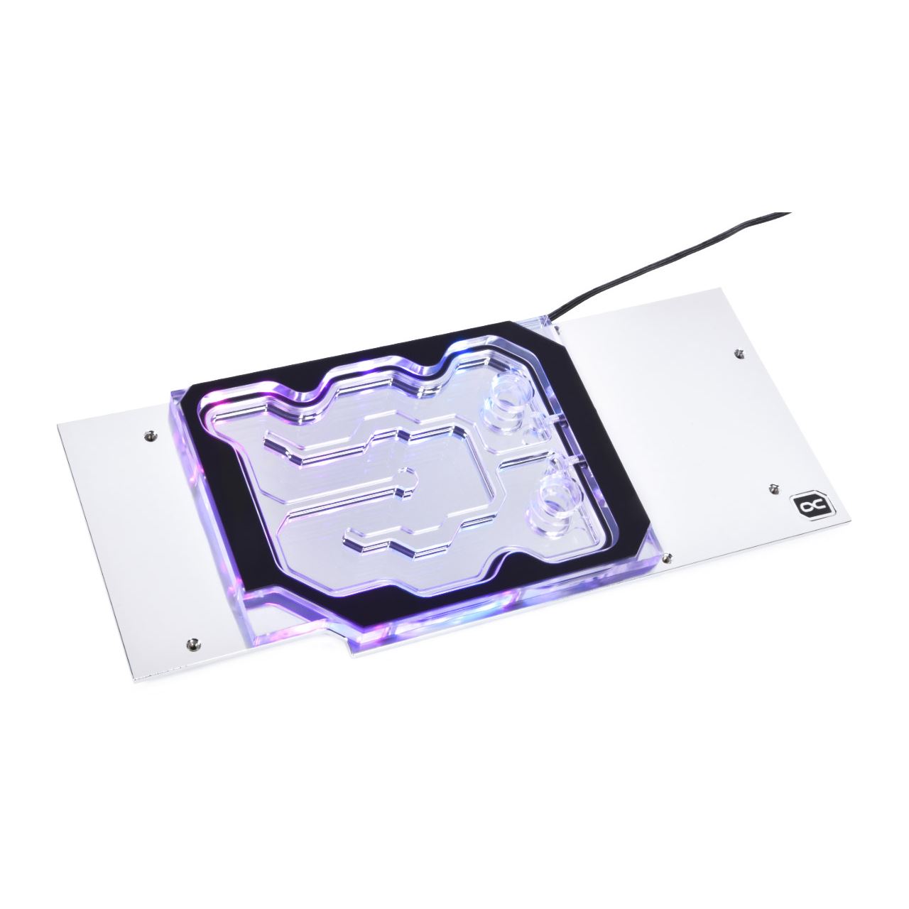 Die Alphacool Eisblock Aurora GPX-N Acryl Active Backplate für Geforce RTX 3080/3090 Grafikkarten ist das perfekte Upgrade für Alphacools Eisblock Aurora Acryl GPX-N GPU Custom Wasserkühler sowie Alphacools Eiswolf 2 GPU AIOs (siehe Kompatibilitätsangaben). Mithilfe der Backplate, bestehend aus vernickeltem Messing, kann jetzt auch die Rückseite von Geforce RTX 3080/3090 Grafikkarten aktiv wassergekühlt und somit eine signifikante Steigerung der Kühlleistung erreicht werden. Anschlussmöglichkeiten Es gibt 2 verschiedene Möglichkeiten, die aktive Backplate in den Wasserkreislauf einzubinden: Variante 1 Der Kühler besitzt auf der Oberseite jeweils einen Ein- und Auslass mit G1/4" Innengewinde. Mit passendenden Anschlüssen und Schläuchen/Hard Tubes kann die Backplate einfach im Wasserkreislauf eingebunden werden. Variante 2 Der Kühler verfügt seitlich über jeweils einen Ein- und Auslass passend für 5/3mm Schläuche. Mit Hilfe von Alphacools MCX 2x Verteiler mit 5/3mm Schlauch (Art. 1022250) kann die aktive Backplate einfach sowie platzsparend in den Wasserkreislauf eingebunden werden. Diese Variante ist eine sinnvolle Wahl, wenn im PC-Gehäuse wenig Platz ist und optimale Schlauchwege schwierig realisiert werden können. Die Anschlussmöglichkeiten sind bei beiden Varianten sehr flexibel, da der Ein- und Auslass Bauart bedingt frei gewählt werden kann. Brillante Beleuchtung Sechs adressierbare digitale RGB LEDs sind direkt eingelassen und verlaufen seitlich vollständig am Kühlblock entlang. Der Effekt ist eine Beleuchtung, die den gesamten Kühlblock einschließt und einzigartige Lichteffekte erzeugt. Die Digitale aRGB LED Beleuchtung wird über einen JST 3-Pin Stecker angeschlossen und kann mit einem Digital-RGB Controller (z.B. Alphacool Aurora Eiscontrol, Art.15360) oder einem Digital-RGB fähigem Mainboard gesteuert werden. Kompatibilität: - Alphacool Eisblock Aurora Acryl GPX-N RTX 3090/3080 Gaming/Eagle mit Backplate (Artikelnummer: 11942) - Alphacool Eiswolf 2 AIO - 360mm RTX 3080/3090 Gaming/Eagle mit Backplate (Artikelnummer: 14416) Technische Daten L x B x H 233,5 x 97 x 13,3 mm Material Backplate Messing, vernickelt Material Kühler Acryl Anschlüsse Wasserkühlung 2x G1/4" | 2x 5/3mm Schlauchanschluss Beleuchtung 6x digital adressierbare RGB LEDs Stromanschluss digital aRGB LEDs 3-Pin JST (male amp; female Weiche) Spannung digital aRGB LEDs 5V Maximale Betriebstemperatur 60 C Druck getestet 0,8 Bar Gewicht 662 g nbsp;