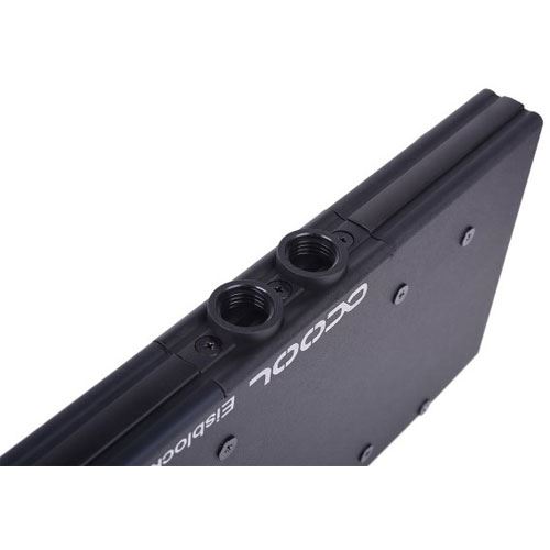 Alle Kühler setzen auf einen identischen Kupferkühlkörper der vollständig vernickelt ist. Der Wasserverlauf ist sehr großzügig ausgelegt, sodass alle Bauteile die Wärme abgeben und aktiv mit Wasser gekühlt werden. Die 35 Kühlfinnen des Kühlers sind lediglich 0,6 mm dünn und decken auch große GPUs vollständig ab. Die großzügige Kühlfläche ist auch ideal für Grafikkarten mit HBM-Speicher geeignet.
