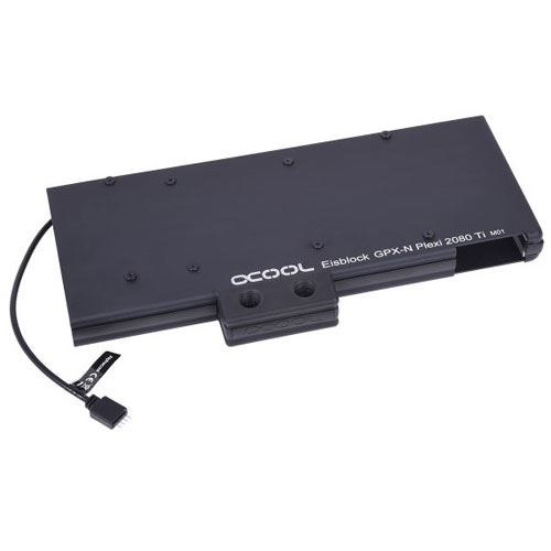 Der weltweit bekannte Hersteller Alphacool bietet mit dem Eisblock GPX einen sehr edlen und hochwertigen full cover Wasserkühler für Ihre Grafikkarte an. Der Eisblock GPX ist in drei Versionen erhältlich. Eine Variante mit einem Acryl-Sichtfenster, einer Full-Acryl Version und eine optisch schlichte aber edle Variante aus Acetal. Beide Versionen mit Acryl bieten zudem eine RGB-LED Beleuchtung. Alle Kühler setzen auf einen identischen Kupferkühlkörper der vollständig vernickelt ist. Der Wasserverlauf ist sehr großzügig ausgelegt, sodass alle Bauteile die Wärme abgeben und aktiv mit Wasser gekühlt werden. Die 35 Kühlfinnen des Kühlers sind lediglich 0,6 mm dünn und decken auch große GPUs vollständig ab. Die großzügige Kühlfläche ist auch ideal für Grafikkarten mit HBM-Speicher geeignet. Mit dem Alphacool Eisblock GPX full cover Wasserkühler für Ihre Grafikkarte erhalten Sie einen hochwertigen Kühler mit einer grandiosen Kühlleistung. Dabei haben Sie die Wahl zwischen einer schlichten, aber edlen schwarzen Acetal-Version, oder zwei auffälligen, wundervoll beleuchteten und schicken Acryl-Variante mit großem Sichtfenster. Kompatibilität NVidia RTX 2080Ti FE Lieferumfang Alphacool Eisblock GPX-N Acryl Nvidia Geforce RTX 2080Ti M01 Backplate Montagematerial