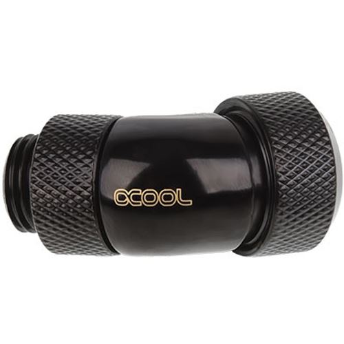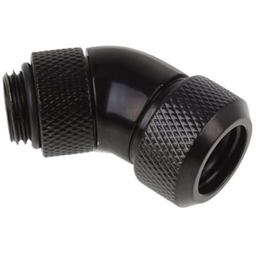 Schwarzer 45-Grad-Winkel-Adapter aus der Alphacool Eiszapfen-Serie, mit drehbarem G1/4-Zoll-Gewinde, für Hard-Tubes mit 13 mm Außendurchmesser, komplett aus Messing