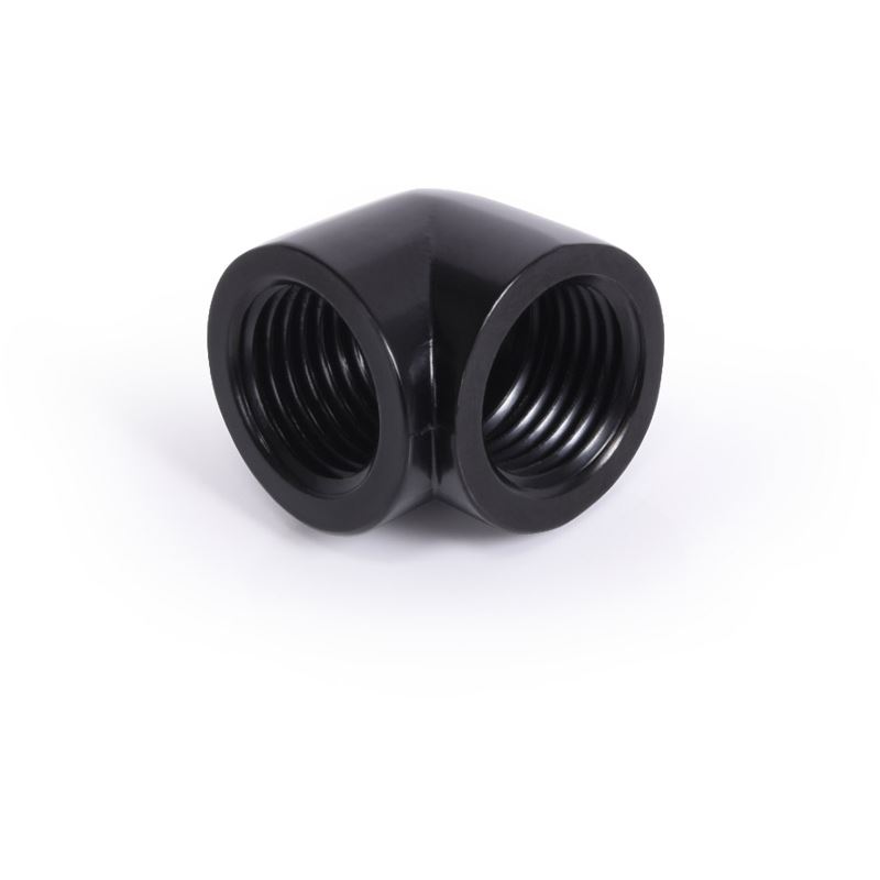 Der Alphacool Eiszapfen 20mm L-connector G1/4" IT to G1/4" IT ist ein 90 Winkelstück mit 2 Innengewinden, das leicht in jeden Wasserkreislauf eingebunden werden kann. Einbinden leichtgemacht Der L-connector ist sehr kompakt und kann durch seine 2 G1/4 Innengewinde in jeden Wasserkreislauf eingebunden werden. Er wird einfach an die entsprechenden G1/4" Anschlüsse an einer beliebigen Position im Wasserkreislauf geschraubt. Design Die Gewinde sind 5mm tief und ermöglichen so das sehr kompakte Design. So kann der L-connector sehr platzsparend im System verbaut werden. Kompatibilität: G1/4" AG Anschlüsse nbsp; nbsp; Technische Daten nbsp; L x B x H 19,7mm x 19,7mm x 18mm Material Messing Farbe Schwarz Gewinde G1/4" IG Gewindetiefe 5mm
