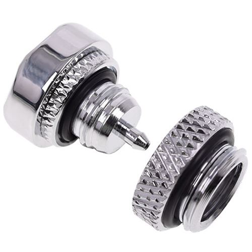 Alphacool Eiszapfen Überdruckventil. Ein Überdruckventil für noch mehr Sicherheit im System! In normalen Systemen reicht in der Regel ein normaler Ausgleichsbehälter um die auftretenden Drücke auszugleichen. Auch die Produkte, die in einem System verbaut werden sind Druck getestet von mindestens 2bar. Aber für User die wirklich viele Komponenten in ihren Kreislauf eingebunden haben, kann es durch den extremen Temperaturunterschied zwischen Ruhezustand und im Betrieb zu sehr hohen Drücken kommen, wo es bei einigen Komponenten doch Ratsamer ist, diesen Druck abzulassen durch ein Überdruckventil! Dieses Überdruckventil kann zum Beispiel ganz einfach in ein T-Stück geschraubt werden und so in jeder Stelle des Kreislaufes montiert werden. Einige Ausgleichsbehälter bieten hierbei zum Beispiel mehrere Öffnungen wo Standardmäßig Verschlusskappen verwendet werden, da kann hier das Ventil eingesetzt werden. Der 1/4" Gewindeanschluss ist dazu noch sehr kurz gehalten, nur 4mm, und lässt noch viele andere Montagestellen in ihrer Wasserkühlung zu. Die geringe Kompletthöhe des Ventils, ohne Gewinde von 16mm, spricht ebenfalls für den Vielfältigen Einsatzbereich. Die an der Unterseite angebrachte Dichtung bietet zusätzlich Sicherheit um ihr System dicht zu halten. Dabei lässt das Ventil Überdrücke von 0.3-0.4kg/cm² an 4.3-5.7psi entweichen. Technische Details: Material: vernickeltes Messing Chrome Anschlussgröße: G1/4" Gewindehöhe: 4mm Höhe ohne Gewinde: 16mm Außendurchmesser: 17mm Entweichende Druck: 0.3-0.4kg/cm² an 4.3-5.7psi (0,3-0,4Bar) Lieferumfang: 1x Alphacool Eiszapfen Überdruckventil G1/4 - Chrome