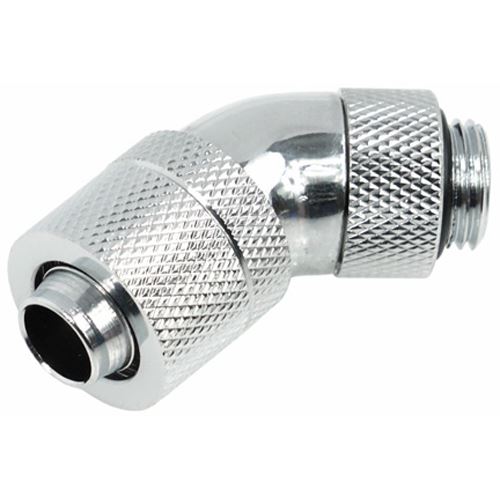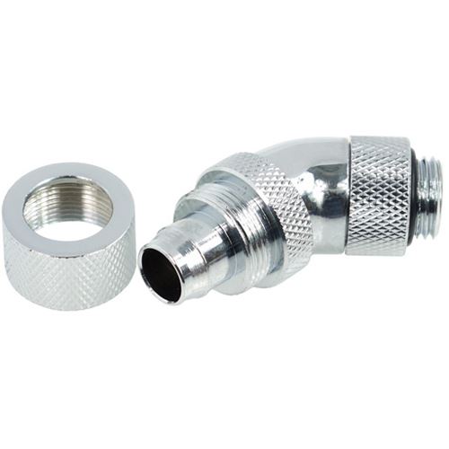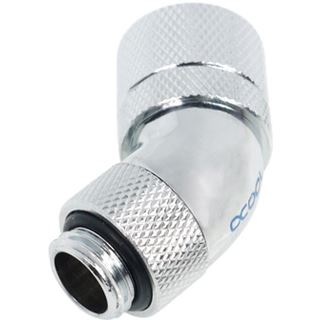 Alphacool-Anschlüsse gehen neue Wege in Form, Verarbeitung, Farbgebung, Vielfalt. Die absolute Neuerung ist ein überragender Innendurchmesser, der das Wort Highflow auch wirklich verdient! Die ersten 3 Farben, Chrome, Deep Black und Shiny Copper, bieten große Vielfalt um eine Vielzahl von Geschmäcker zu bedienen. Die komplett aufeinander abgestimmte Produktserie lässt jedes System in einem eigenen Glanz erscheinen und der Individualität sind im Zusammenspiel mit Alphacool-Schläuchen keine Grenzen gesetzt! Mit einem neuen Verfahren beim Chromatieren wird die Colorierung fest mit dem Messinguntergrund verbunden, die Langlebigkeit der intensiven Farbe ist so gegeben und ein Abplatzen der Chromschicht wird unterbunden. Ein blauer Alphacool Schriftzug auf einigen der Anschlüsse hebt die Besonderheit dieser Artikel noch einmal hervor. Die Funktion dieses Konnektors ist: Dieser Anschluss wird verwendet um einen 13/10mm Schlauch mit einen 1/4Zoll Gewinde zu verbinden. Die Anschluss hat einen 45Grad Knick und ist drehbar, was Interessant ist für ein leichte Verschlauchung im System. Technische Daten: Material: Messing, chromatiert Farbe: Chrome Abmessung: Länge: 36mm Breite: D18mm Höhe: 40mm Schlauchgröße: 13/10mm Lieferumfang: 1 x Alphacool HF Schraubanschluss 45° G1/4 Aussengewinde auf 13/10 drehbar - Chrome Dieses Produkt wurde für Sie getestet: Moddingbase Xtremesystems (Engl.) (userreview) PT-reviews (Pt)