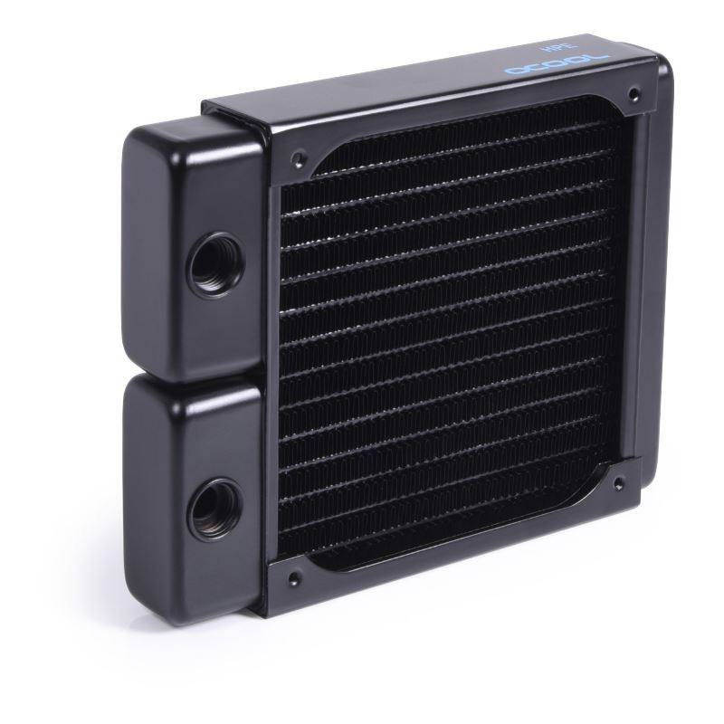 Seit mehr als einer Dekade dominiert Alphacool mit der NexXxoS Full Copper Radiatorserie den Markt. Das umfangreiche Portfolio an Radiatorvarianten ist weltweit einzigartig. Genau wie unser Herstellungsverfahren, welches uns ermöglicht alle wasserführenden Teile und die Kühlfinnen aus reinem Kupfer zu fertigen. Damit erreicht die NexXxoS Serie den höchsten Wärmeleitwert aller Radiatoren am Markt. Mit ihrer unvergleichbaren Performance können die Radiatoren selbst extrem hohe Abwärme spielend abführen und sind aus vielen Bereichen der Kühlindustrie nicht mehr wegzudenken. Der nächste Evolutionsschritt: NexXxoS HPE Full Copper Radiator! Der NexXxos Full Copper HPE Radiator verwendet die gleichen Materialien wie die bisherigen NexXxos Modelle, geht aber technisch einen Schritt weiter. Durch den verdichteten inneren Aufbau, konnte die Anzahl an Wasserkanälen und Kupferlamellen erhöht werden. Damit ist ein größeres Wasservolumen im direkten Kontakt mit den Kühlfinnen und die Wärmeübertragung wird enorm verbessert. Durch die höhere Anzahl der Finnenreihen und deren Verkürzung wird zudem die Kühlfläche wesentlich effizienter ausgenutzt. Vergleichstests* mit dem herkömmlichen NexXxos Radiator haben ergeben, dass bei Verwendung des HPE Radiators eine Leistungssteigerung von 4,5K möglich ist. Bei höherer Umgebungstemperatur und höherer Drehzahl der Lüfter steigt der Leistungsabstand zu den normalen NexXxoS Radiatoren sogar progressiv an und erreicht eine mögliche Leistungssteigerung von bis zu 6K. (* Testaufbau: NexXxos ST30 360mm Radiator vs. NexXxos HPE-30 360mm Radiator mit Eisbaer Kühler und 3x 120mm Rise Aurora Lüfter und auf Asus Prime x299 Mainboard mit Intel i9 10900x CPU mit 350W Abwärme) Anschlussmöglichkeiten amp; Montage Der NexXxoS HPE Radiator verfügt im Bereich der Vorkammern über jeweils zwei IN oder OUT Anschlüsse mit G1/4 Gewinde. Auf der gegenüberliegenden Seite befindet sich ein Fill- oder Entlüftungsport, der zum Befüllen und Entleeren des Wasserkreislaufs genutzt werden kann. Dem Radiator liegen sämtliche Schrauben für die Montage im Gehäuse sowie für die Montage der Lüfter bei. Zusätzliche Schrauben werden in der Regel nicht benötigt. Sicherheit geht vor Der NexXxoS HPE Radiator verfügt über eine spezielle Schutzvorrichtung die verhindert, dass Lüfter- oder Montageschrauben zu tief eingedreht werden können. Unter allen Montagebohrungen wurden dafür Schutzplatten platziert, um ein zu tiefes Eindrehen der Schrauben zu verhindern. Dadurch werden die darunterliegenden Kühlfinnen und Wasserkanäle vor Beschädigung geschützt. Patentierte Verschlussschrauben Alle NexXxoS HPE Radiatoren verwenden die patentierten Verschlussschrauben von Alphacool. Herausstehende Verschlussschrauben sorgen häufig dafür, dass der Radiator nicht bündig angelegt werden kann. Alphacools Screw Plugs sind vollständig im Radiator versenkt, schließen bündig mit dessen Oberfläche ab und ermöglichen eine problemlose Montage im Gehäuse. Technische Daten Radiator L x B x H 151,5 x 124 x 30mm (+/- 3) Material Kühlfinnen, Vorkammern amp; Kühlkanäle Kupfer Material Gewinde Messing Material Außengehäuse rostfreier Stahl Anschlüsse 4x G1/4" IN/OUT amp; 1x Fill-/Drainport G1/4" (max. 5mm Gewindelänge) Mögliche Lüftergröße 120mm Mögliche Lüfterbelegung 1x einseitig / 2x beidseitig Gewindegröße Lüftermontage M3 Druck getestet 0,8 Bar Maximale Arbeitstemperatur 60C Finnenabstand 18 FPI nbsp;