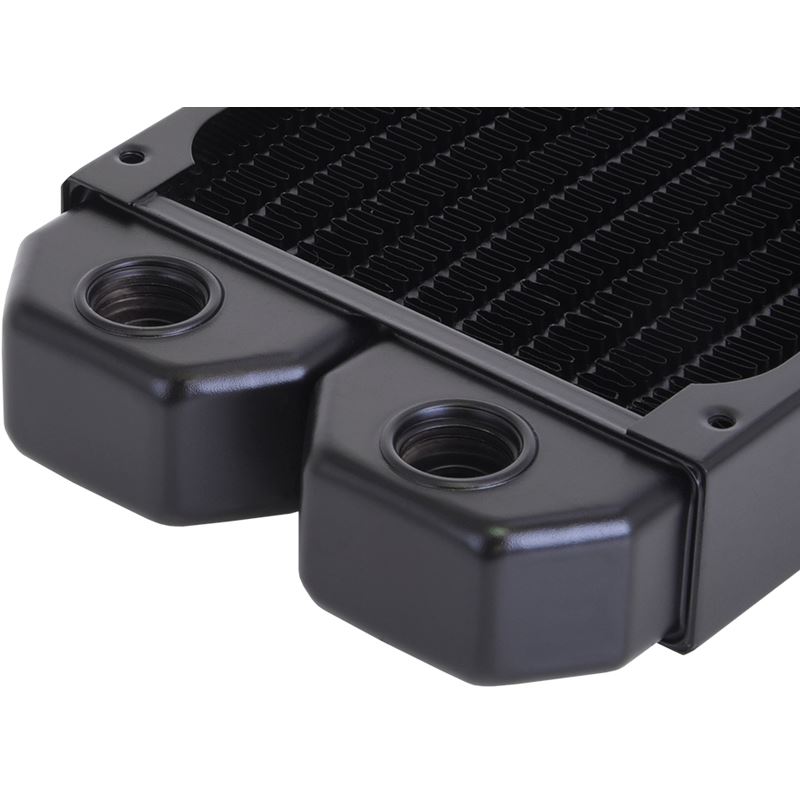 Alphacool ist ein international renommiertes Unternehmen im Bereich Wasserkühlungslösungen für Industrie- und Endkunden. Mit Leidenschaft entwickeln wir Neuheiten und Verbesserungen, die zur optimalen Kühlleistung und optischen Aufwertung der Heim- wie auch Firmenrechner und Server dienen. Kompromisslos bei der Materialwahl Wie gewohnt, setzt Alphacool auch bei den NexXxoS ST25 Slim Radiatoren auf reines Kupfer. Die Vorkammern, die Wasserkanäle und die Kühlfinnen bestehen aus Kupfer und sind weltweit ein Alleinstellungsmerkmal. Kein anderer Hersteller setzt bei all diesen Komponenten zusammen auf reines Kupfer. Dadurch gehören die Alphacool Radiatoren seit vielen Jahren zu den beliebtesten und besten auf dem Markt, was die perfekte Grundlage für jede Wasserkühlung bietet. Satte Kühlleistung Um die Performance eines Radiators zu maximieren, greift Alphacool tief in die Trickkiste. Den Anfang macht Kupfer. Mit einer Wärmeleitfähigkeit von 400 W/(mK) bei Kupfer im Vergleich zu 236 W/(mK) bei Aluminium, steht der Sieger fest. Dazu kommt die spezielle Finnendichte. Alphacool ist eines der ältesten Unternehmen im Bereich Wasserkühlung und hat unzählige Labortests durchgeführt. Das Ergebnis ist ein Finnenabstand von 15 FPI. Dadurch wird der Luftstrom relativ geringfügig behindert, da die Luft auch ohne hohen Druck durchgleiten kann. Die Kühlleistung leidet darunter aber nicht, im Gegenteil. Um den Luftstrom optimal zu nutzen, haben alle Kühlfinnen kleine Flaps. Hierbei handelt es sich um sind winzige Flügel, die den Luftstrom in die gewünschte Richtung leiten. Bei den Radiatoren sind diese kaum 1 mm hoch, sorgen aber dennoch für kontrollierte Luftverwirbelungen, um die Kühlleistung zu steigern und die Strömungsgeräusche zu minimieren. Kompakt Die ST25 Slim Radiatoren bieten besonders im Bereich Mini-PCs oder für SSF (Small Form Factor) Systeme die ideale Lösung. Durch die extrem flache Bauweise sind die NexXxoS ST25 Radiatoren die ideale Grundlage für eine Wasserkühlung in solch kleinen Gehäusen. Durch extrem enge Platzverhältnisse in diesen Gehäusen ist man dankbar für jeden Millimeter, der an Platz gespart werden kann. Technische Daten: L x B x H: 132 x 92 x 25 mm FPI: 15 Material Kühlfinnen: Kupfer Material Vorkammern: Kupfer Material Kühlkanäle: Kupfer Material: Gewinde Messing G 1/4“ Gewinde: 2 x Mögliche Lüftergröße: 92 mm Download Datenblatt PDF: Alphacool NexXxoS ST25 Full Copper 92mm Radiator