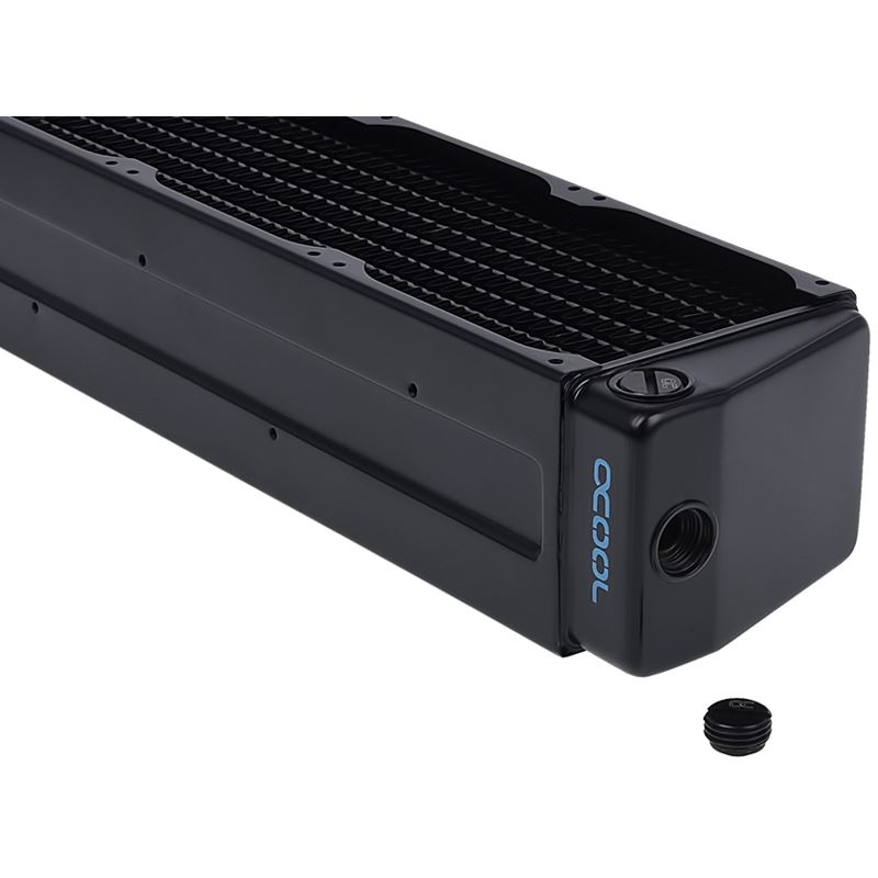 Es ist das beste System, denn es ist dein System! Gib dich nur mit der Perfektion zufrieden! Die neue Alphacool NexXxoS UT60 X-Flow Server Radiatoren führen dich auf die nächste Stage! Steigere die Leistung deines Systems mit den neuen Alphacool NexXxoS UT60 X-Flow Server Radiatoren. X-Flow – gib dich nur mit dem Besten zufrieden Für die bestmögliche Kühlung deines Systems setzt Alphacool bei den neuen NexXxoS Server Radiatoren auf den X-Flow. Der Fluss läuft von der einen Seite des Radiators zur anderen Seite und bedient sich direkt allen Finnen. Dein Alphacool NexXxoS UT60 X-Flow erreicht sofort die bestmögliche Kühlung mit optimiertem Wasserkreislauf. Versenkte Verschlussschrauben – alles, nur nicht gewöhnlich Erstmals hat Alphacool die Verschlussschrauben versenkt. Dieses einzigartige Design ermöglicht es dir, mit deinem Alphacool NexXxoS UT60 X-Flow Radiator flexibel zu bleiben. Montiere deinen Radiator so wie du es brauchst. Dank der verschieden positionierten Ein- und Auslässe bleibst du individuell und einzigartig. Vollkupfer – die beste Performance auf höchstem Niveau Auch bei der neuen Alphacool NexXxoS Reihe ist der Radiator aus Vollkupfer hergestellt. Dadurch bieten dir die Radiatoren die höchste Wärmeleitfähigkeit für die beste Performance. Setze auf die Nr. 1 bei den Materialien. Unterschiedliche Größen – gleiche Qualität Den neuen Alphacool NexXxoS UT60 X-Flow gibt es in unterschiedlichen Größen und Dicken. Alle Radiatoren dieser Reihe sind kompatibel zu den 2HE Server-Racks. Dank der besonderen Form ist der Einbau auch bei den größeren Radiatoren ein Kinderspiel. Entscheide selbst, welche Größe für dein System perfekt ist und wähle immer die beste Qualität. Technische Daten Abmessungen (LxBxH): 284 x 80 x 60mm Nettogewicht: 900g Maximale Arbeitstemperatur: 180°C Material (Finnen/Kanäle/Vorkammern): Kupfer Material Außengehäuse: Stahl Anschlüsse: 6x G1/4" Radiator Montagemöglichkeit: 8x M3 Gewinde Lüftergröße: 80mm Lüfterplätze: 3 einseitig / 6 beidseitig Lüftergewinde: M3 Druckgetestet: 1,5 Bar Zertifikate: CE, FC, ROHS Lieferumfang 1x Alphacool NexXxoS UT60 Full Copper X-Flow 80mm Triple Radiator Montagematerial Datenblatt Anleitung