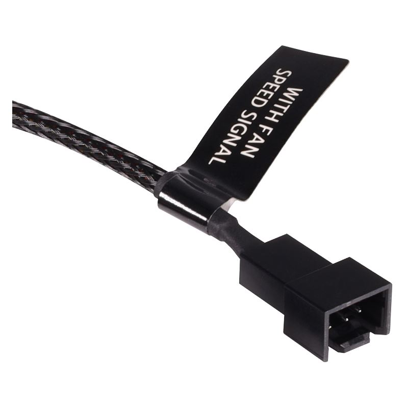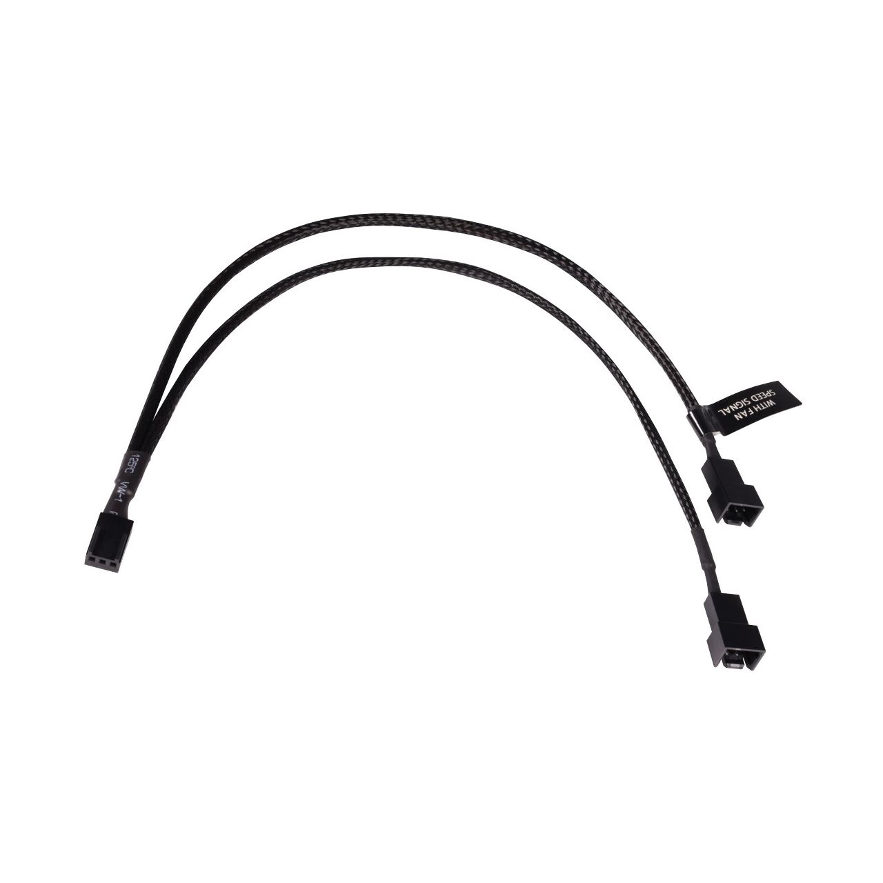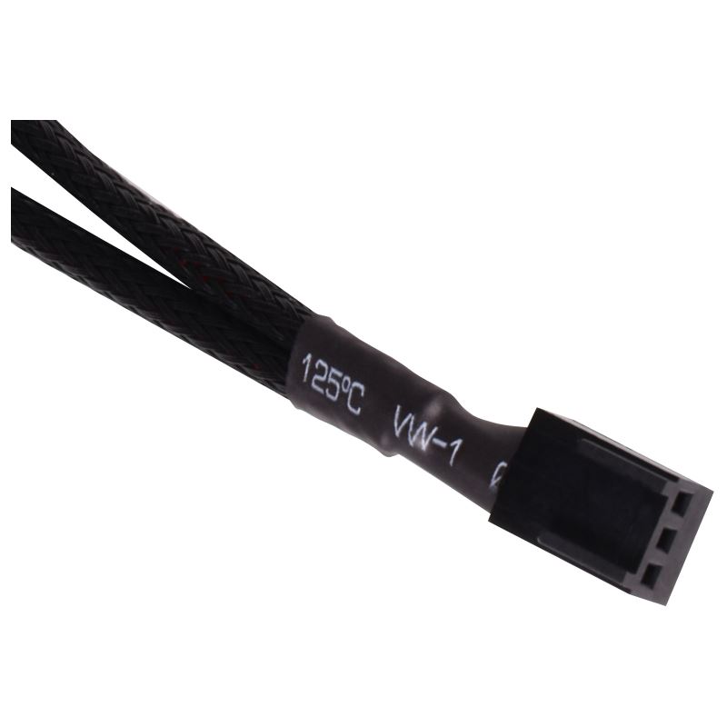 Gesleevtes 3-Pin auf 2x 3-Pin Y-Splitter Verteilerkabel. Verteilt Stromversorgung und RPM Signal auf mehrere Lüfteranschlüsse. Das Sleeving bietet zusätzlichen Schutz, Stabilität und eine längere Lebensdauer.