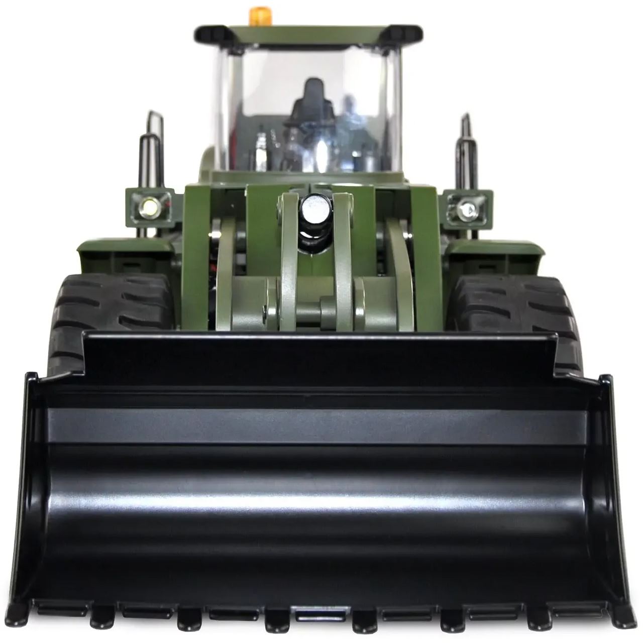 Der exklusive Radlader G485E ME Militär im Maßstab 1:14 besticht optisch mit seiner Sonderlackierung in Nato-Olivgrün und der schaltbaren Rundumleuchte. Dank verbesserter Elektronik wird diese Baumaschine vielfältigen Anforderungen gerecht – zusätzlich ist im Lieferumfang jeweils aus Metall ein selbstkonstruierter Schnellwechsler und eine Paletten-Gabel enthalten. Der Abwechslung im Einsatz sind also kaum Grenzen gesetzt.