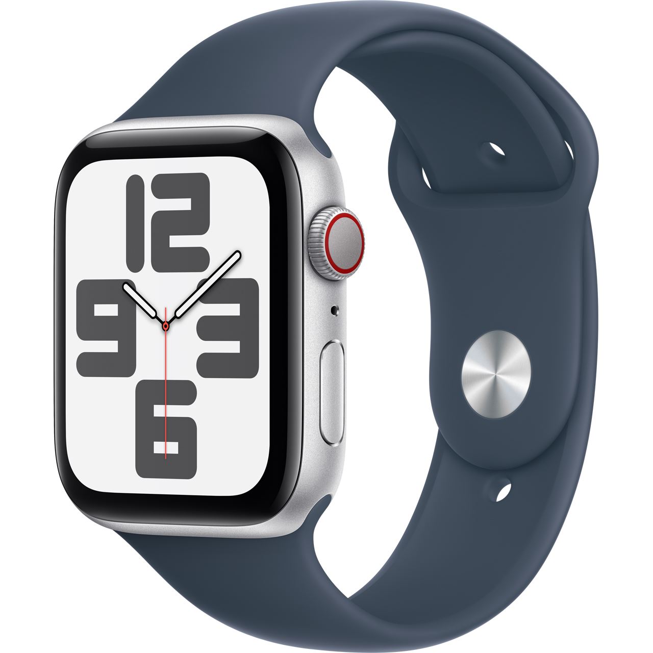 Apple Watch SE 44 mm Aluminium (GPS+Cellular) Sportarmband M/L denim, silber
