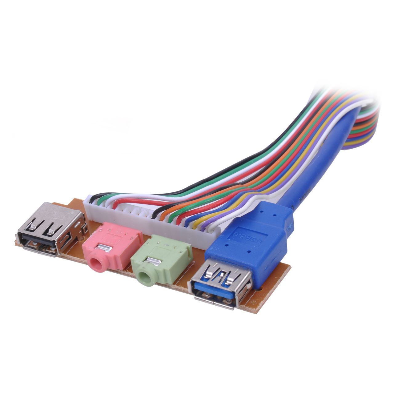Das I/O Panel Kit von Phobya verfügt über USB, USB 3.0, sowie Audioanschlüsse. Scope of Delivery 1x Phobya I/O Panel Kit USB 3.0 & Audio 2x Schrauben