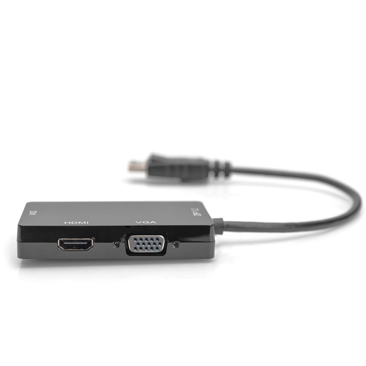 Mit diesem Adapter / Konverter können Sie Ihren Computer oder Laptop mit DisplayPort-Schnittstelle an jedes HDMI-, VGA- oder DVI-fähige Display anschließen.