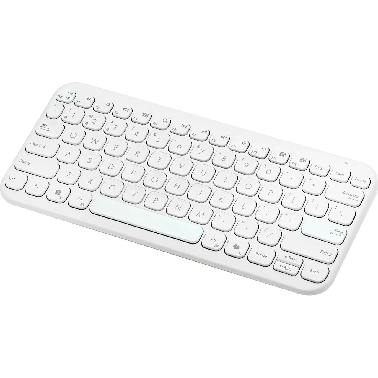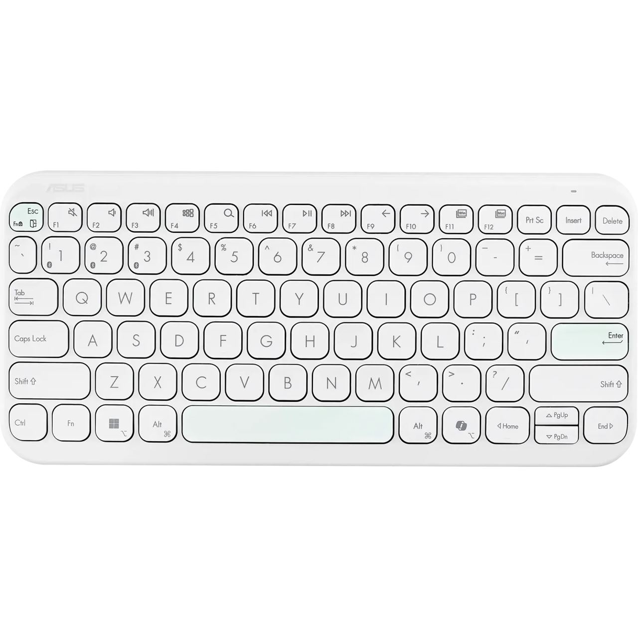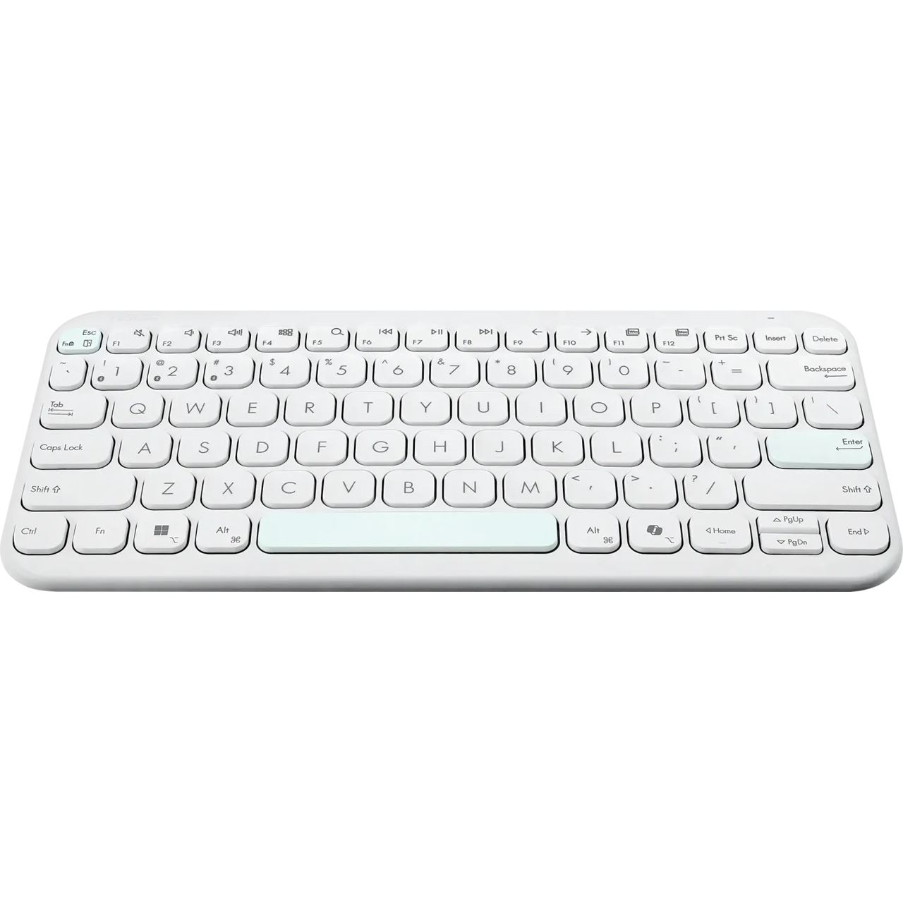 ASUS Marshmallow Keyboard KW100. Tastatur Formfaktor: 75%. Tastatur-Stil: Gerade. Übertragungstechnik: Kabellos, Geräteschnittstelle: Bluetooth, Tastatur-Switch: Scherenschalter, Tastaturaufbau: QWERTZ, Empfohlene Nutzung: Haus. Produktfarbe: Weiß