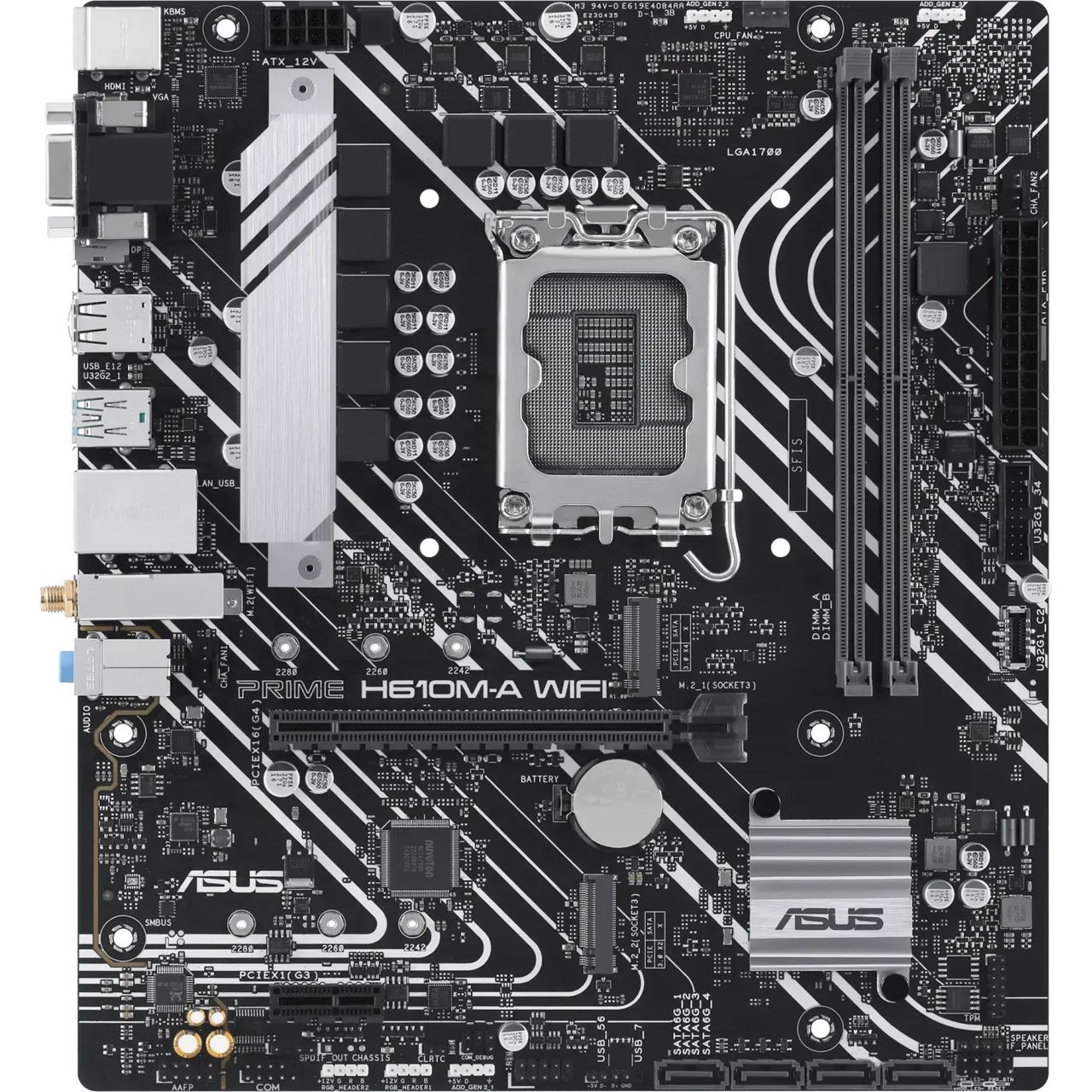 Das Prime H610M-A WIFI D4 bietet zwei M.2-Steckplätze, die Datenübertragungsgeschwindigkeiten von bis zu 32 Gbit/s über PCIe 3.0 unterstützen und damit schnellere Boot- und Ladezeiten von Betriebssystemen oder Anwendungen ermöglichen.