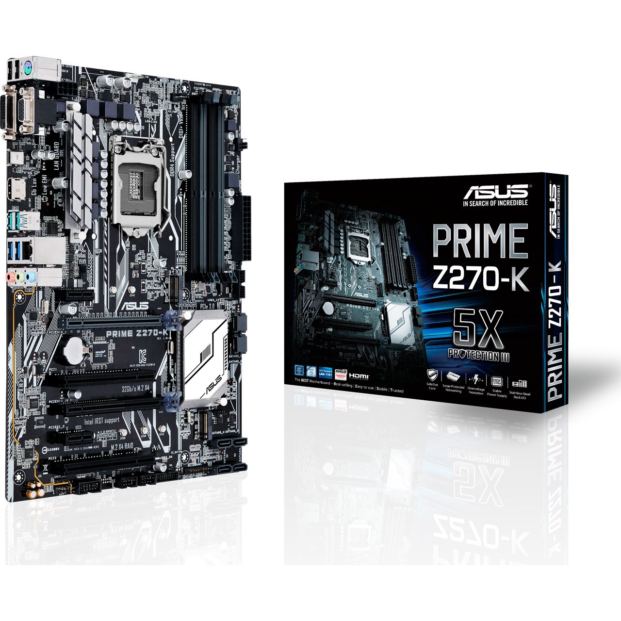 Mit dem ASUS PRIME Z270-K erhalten Sie ein erstklassiges Mainboard für den Einstiegsbereich. Dabei spielt es keine Rolle, ob Sie gerade Ihr System upgraden oder ein komplett neues System auflegen möchten. Das Mainboard präsentiert sich mit seinem Auftreten als ein starkes Gesamtpaket. Profitieren Sie vom hochwertigen, modernen Design und den innovativen Features.