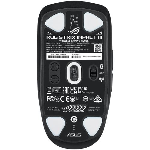 Die in der ROG Strix Impact III Wireless verwendeten Schalter haben eine Lebensdauer von 70 Millionen Klicks. Um die Abweichung der Schalterkraft zwischen der linken und der rechten Maustaste zu minimieren, werden Schalter mit einer Abweichung von +/- 5 Gramm (g) zusammen sortiert, um ein einheitliches Klickgefühl zu gewährleisten.