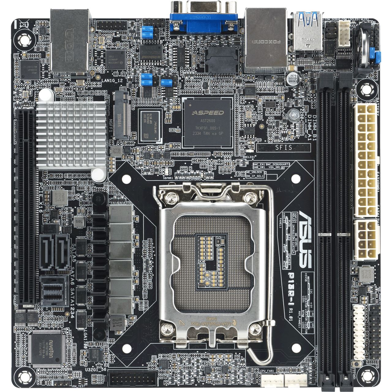 ASUS P13R-I. Prozessorhersteller: Intel, Prozessorsockel: LGA 1700, Kompatible Prozessoren: Intel® Pentium®, Intel® Xeon®, Intel Xeon E. Unterstützte Arbeitsspeicher: DDR5-SDRAM, RAM-Speicher maximal: 64 GB, Arbeitsspeicher Typ: DIMM. Unterstützte Speicherlaufwerk-Schnittstellen: PCI Express 4.0, SATA III, Unterstützte Speicherlaufwerke: HDD & SSD. Grafikkarte: AST2600, On-board Grafikadapter-Speicher: 64 MB. Ethernet Schnittstellen Typ: Gigabit Ethernet