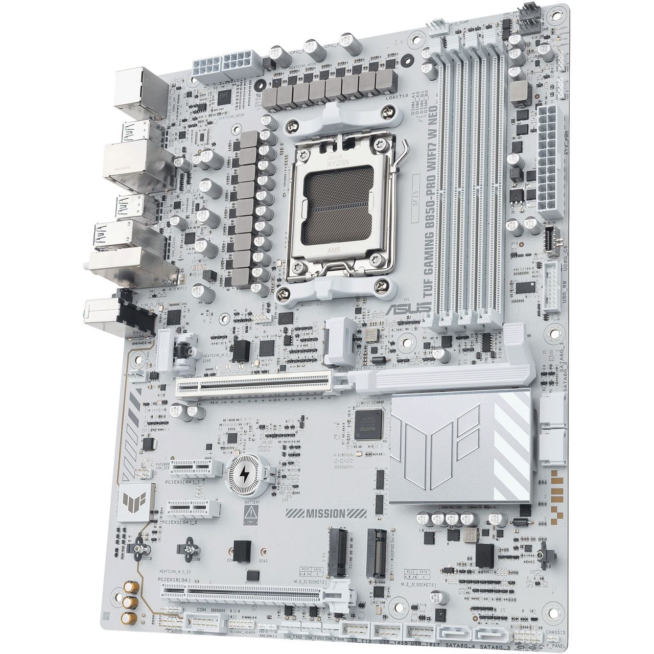 Das ASUS TUF GAMING B850-PRO WIFI7 W NEO nimmt alle wesentlichen Elemente der neuesten AMD Ryzen™ Prozessoren auf und kombiniert sie mit spieletauglichen Funktionen und bewährter Haltbarkeit. Mit einer verbesserten Stromversorgungslösung und einem umfassenden Kühlsystem übertrifft dieses Mainboard die Erwartungen mit einer grundsoliden und stabilen Leistung für Gaming-Marathons. TUF GAMING-Mainboards werden außerdem strengen Härtetests unterzogen, um sicherzustellen, dass sie Bedingungen standhalten, bei denen andere versagen könnten. Diese Plattform bietet die Leistung und Konnektivität, die fortschrittliche KI-PC-Anwendungen erfordern.