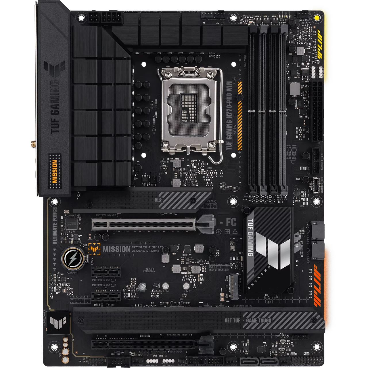 Das TUF GAMING H770-PRO WIFI vereint alle wesentlichen Elemente der neuesten Intel® Prozessoren mit spieletauglichen Funktionen und bewährter Haltbarkeit. Mit Komponenten in Militärqualität, einer verbesserten Stromversorgungslösung und einem umfassenden Kühlsystem übertrifft dieses Mainboard alle Erwartungen und bietet eine grundsolide Leistung für Marathon-Gaming. TUF GAMING-Mainboards werden außerdem strengen Härtetests unterzogen, um sicherzustellen, dass sie Bedingungen standhalten, bei denen andere versagen könnten. Ästhetisch ist dieses Modell mit einem geprägten Namensschild und geometrischen Designelementen ausgestattet, die die Zuverlässigkeit und Stabilität der TUF GAMING-Serie widerspiegeln.