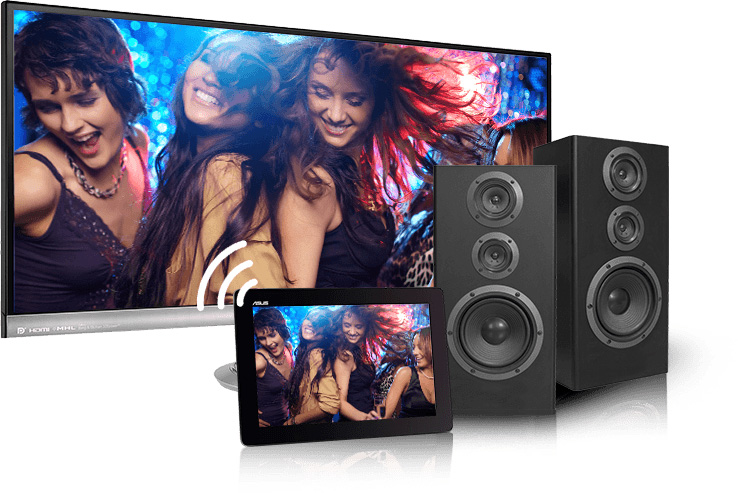 Greifen Sie überall auf die Multimedia-Inhalte auf Ihrem PC zu. Hören Sie auf dem PC gespeicherte Musik, während Sie im Café sitzen, oder zeigen Sie Ihren Freunden Ihren Lieblingsfilm auf einem Smart-TV. Mit ASUS Media Streamer sind Sie überall gut unterhalten.