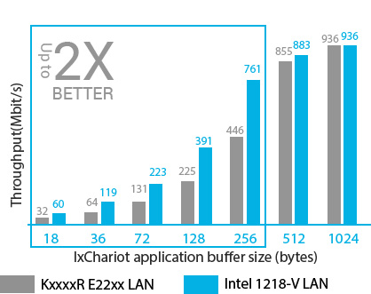 Mit dem unabhängigen Netzwerk-Testtool IxChariot haben ASUS-Ingenieure getestet, wie viel schneller Intel Gigabit Ethernet kleine UDP-Datenpakete (bis 256 Byte) verarbeitet, die für reibungsloses Gaming entscheidend sind. Die Ergebnisse zeigen: Mainboards mit X99 leiten Datenpakete mehr als doppelt so schnell weiter wie andere LAN-Technologien für Gamer.