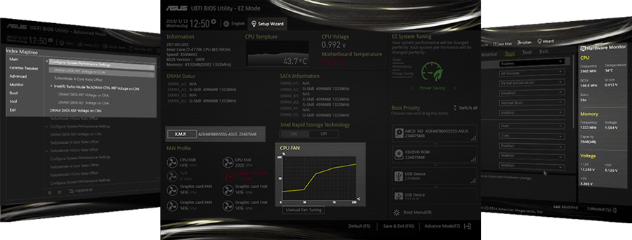 Das eleganteste grafische UEFI-BIOS mit Maussteuerung wurde noch einmal verbessert. Unerfahrene Anwender und routinierte Overclocker finden sich mit dem einfachen EZ-Modus und dem erweiterten Modus gleichermaßen zurecht.