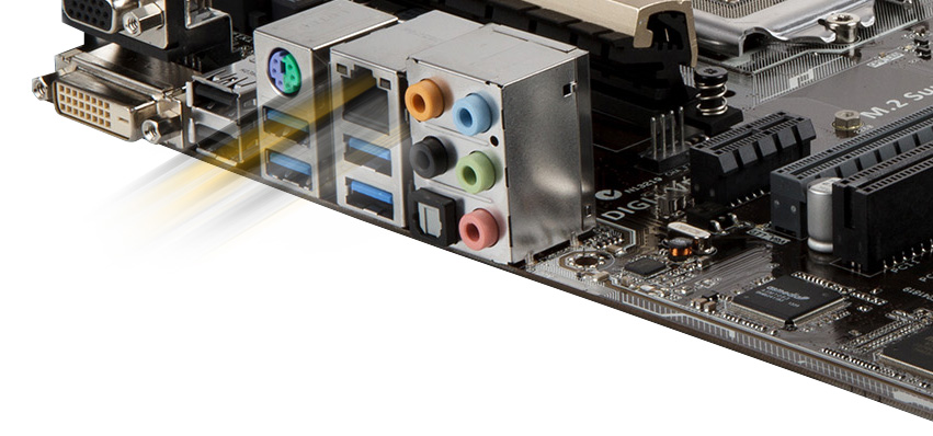 Das Mainboard unterstützt die 4., neue 4. und 5. Generation der Intel®-Prozessoren Core™ i7/i5/i3/Pentium®/Celeron® mit dem Sockel LGA 1150. Durch den integrierten Grafikprozessor, Speicher und die integrierten PCI Express™-Controller unterstützt es die integrierte Grafikausgabe mit dedizierten Chipsätzen, 2-Channel (4 DIMM) DDR3-Speicher sowie 16 PCI Express 3.0/2.0-Lanes. Damit ist eine überragende Grafikleistung gesichert.
