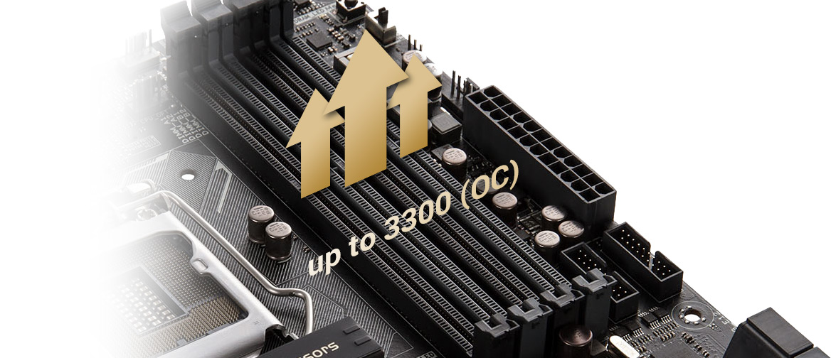 Unterstützte Speichermodule: DDR3-1333, DDR3-1600, DDR3-1866, DDR3-2000, DDR3-2133, DDR3-2200, DDR3-2400, DDR3-2600, DDR3-2666, DDR3-2800, DDR3-2933, DDR3-3000, DDR3-3100, DDR3-3200, DDR3-3300