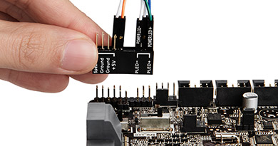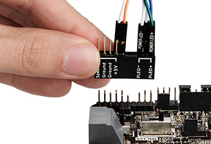 Keine Unsicherheit mehr, welches Frontpanel-Kabel wo angeschlossen wird: Stecken Sie die Kabel einfach auf den einteiligen Stecker Q-Connector, und sie sind um Handumdrehen angeschlossen.