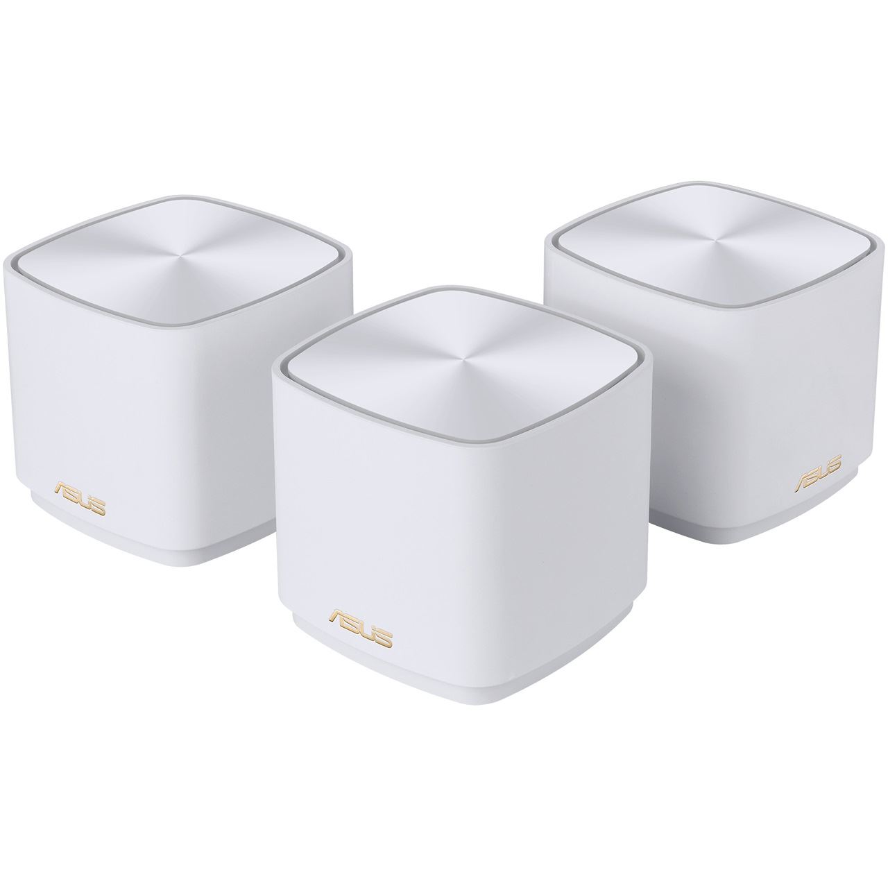 ASUS ZenWiFi XD5 (W-3-PK). Produktfarbe: Weiß, Antennentyp: Intern, Produkttyp: Mesh-Router. WLAN-Band: Dual-Band (2,4 GHz/5 GHz), Top WLAN-Standard: Wi-Fi 6 (802.11ax), WLAN-Standards: 802.11a, 802.11b, 802.11g, Wi-Fi 4 (802.11n), Wi-Fi 5 (802.11ac), Wi-Fi 6 (802.11ax). AC Eingangsspannung: 110 - 240 V, AC Eingangsfrequenz: 50 - 60 Hz, Netzteil Ausgangsspannung: 12 V. Anzahl enthaltener Produkte: 3 Stück(e)