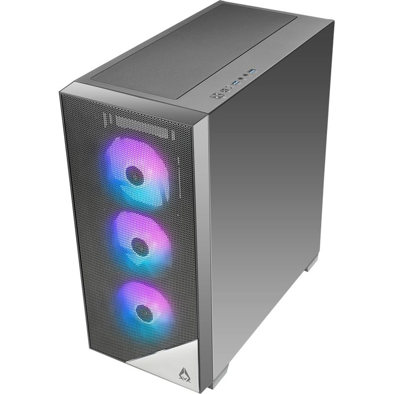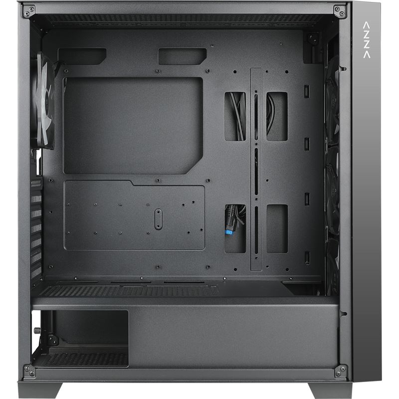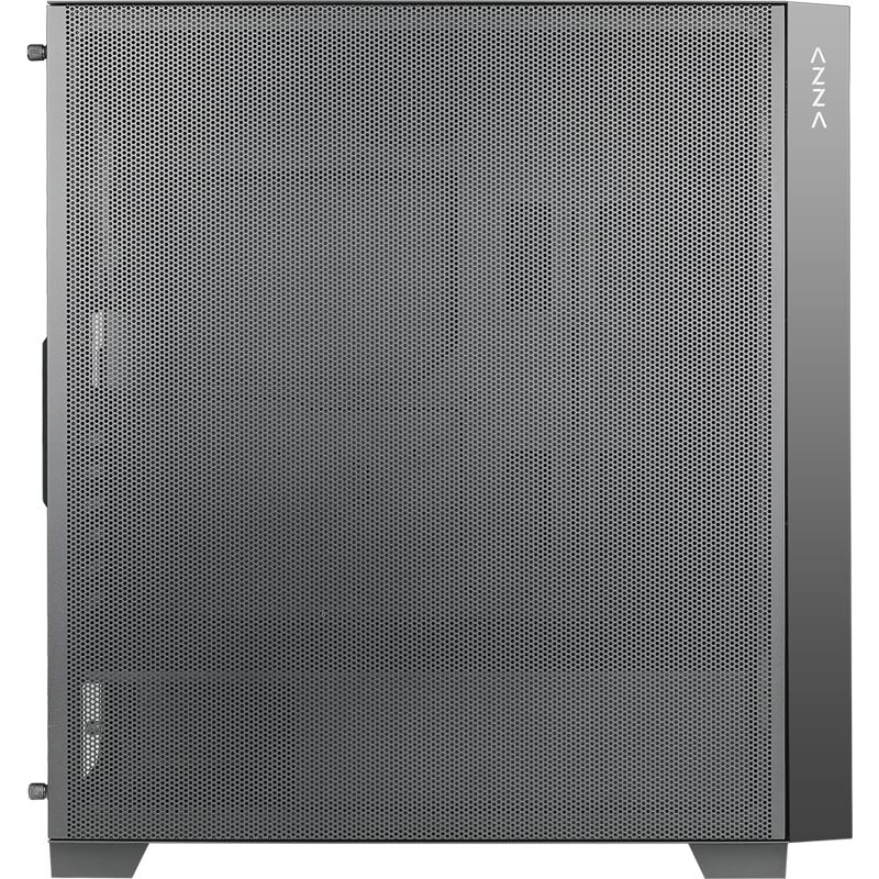 Das Aero 480 ist auf vielfältige Weise beeindruckend, beginnend mit seinem äußerst ansprechenden ästhetischen Design. Mit seinem glatten, minimalistischen Äußeren und dem dezenten Azza-Logo auf der Frontplatte ist dieses Gehäuse eine elegante Ergänzung für jeden Arbeitsbereich oder Gaming-Raum.