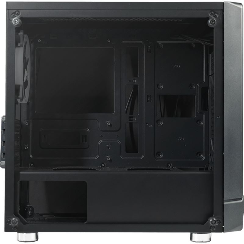Das Azza Noir 130 überzeugt durch sein schlichtes, aber funktionelles Design. Das Seitenfenster aus gehärtetem Glas gibt den Blick auf Ihre Hardware frei. An der Vorder- und Rückseite ist das Gehäuse jeweils mit einem 120 mm ARGB Lüfter ausgestattet und lässt sich so farblich perfekt an Ihr Setup anpassen. In der Front können Radiatoren bis zu 240 mm verbaut werden. Außerdem können bis zu 6x 2,5 Zoll sowie 3x 3,5 Zoll Festplatten eingebaut werden. Auch für vier weitere Steckkarten findet sich im Gehäuse Platz. Auf der Oberseite finden sich zwei USB 2.0 und ein USB 3.0 Anschluss sowie der Power Button, ein LED Button und HD Audio Anschluss.